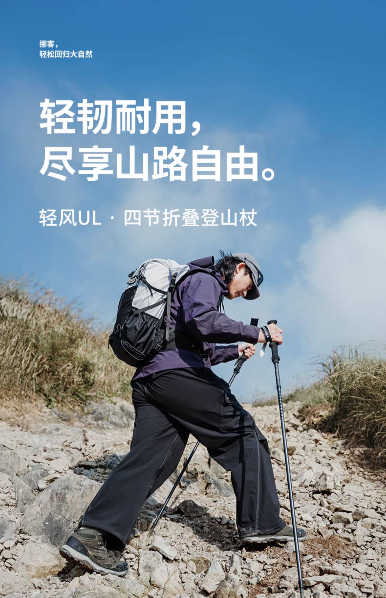 Nok 탄소 섬유 4 섹션 접이식 하이킹 스틱 전문 등산 장비 남성과 여성 야외 하이킹 등산 지팡이