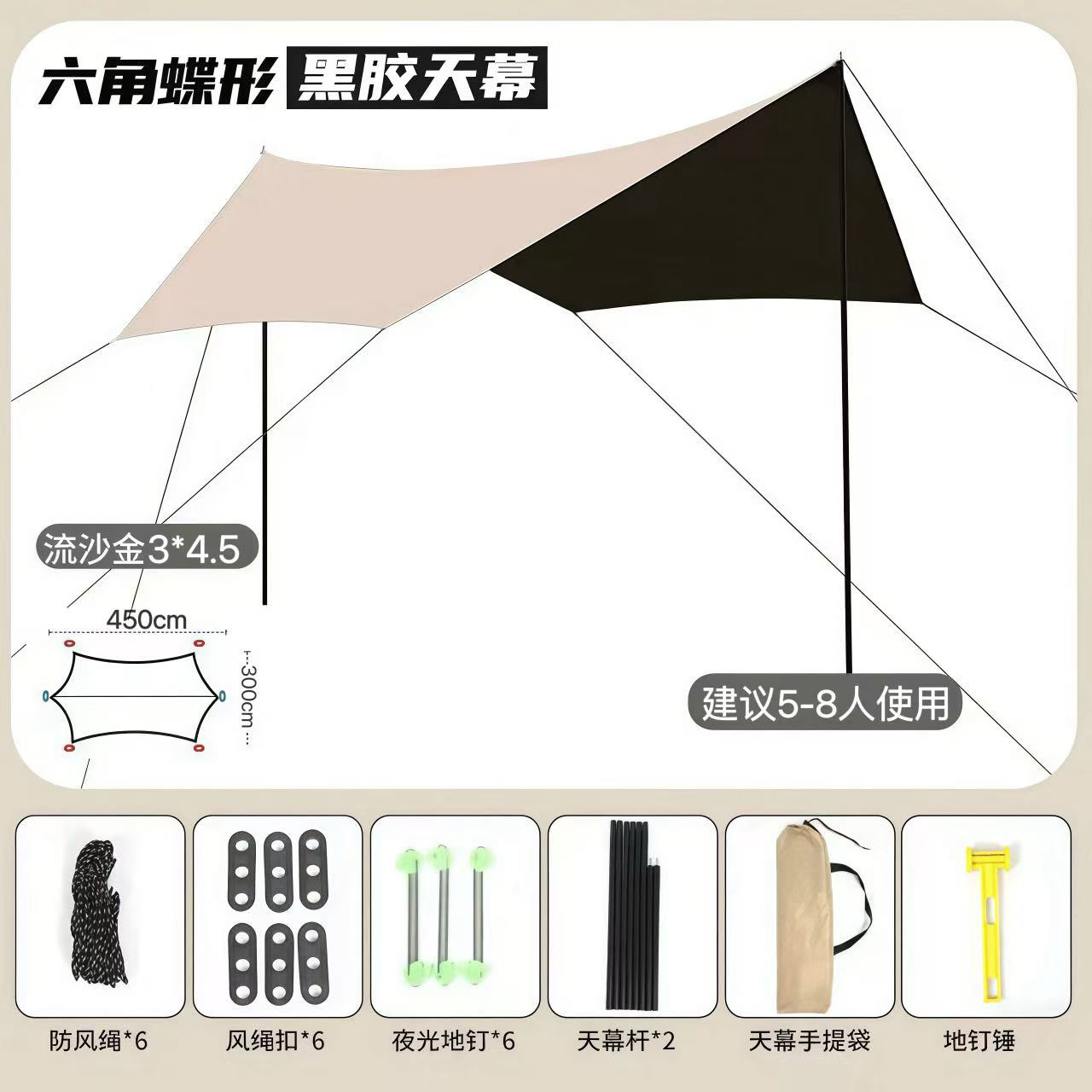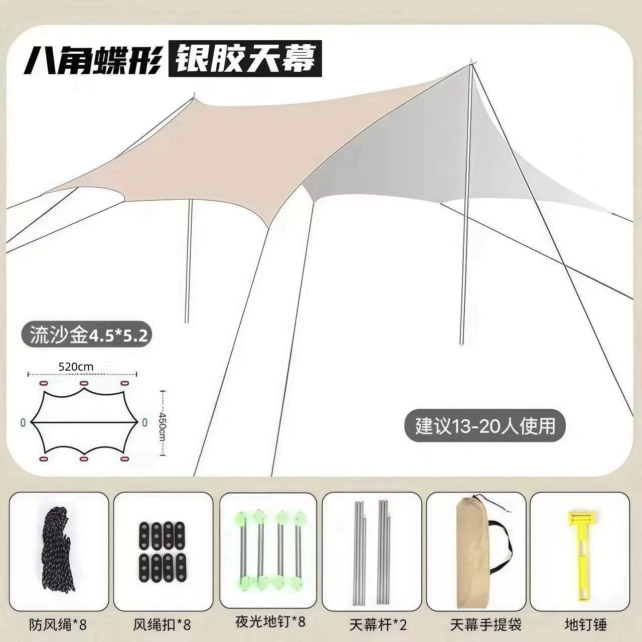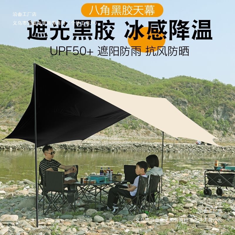 야외 캐노피 텐트 캠핑 여행 피크닉 장비 두꺼운 태양 보호 및 방수 팔각형 검정색 접착제 실버 코팅 천막
