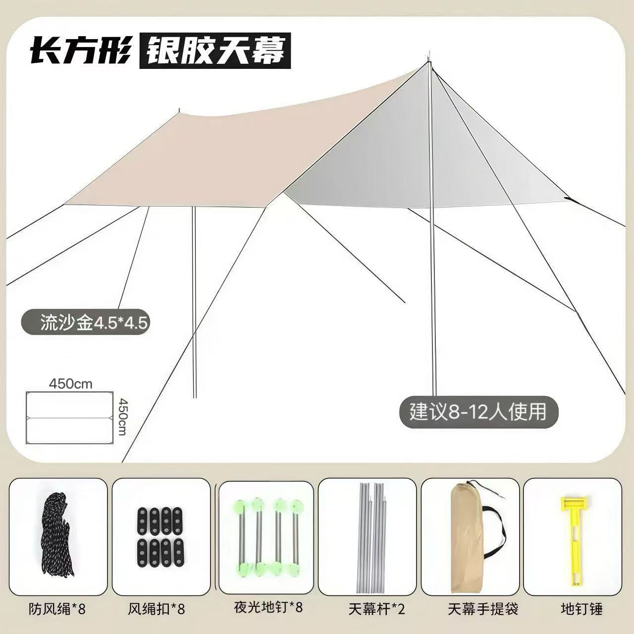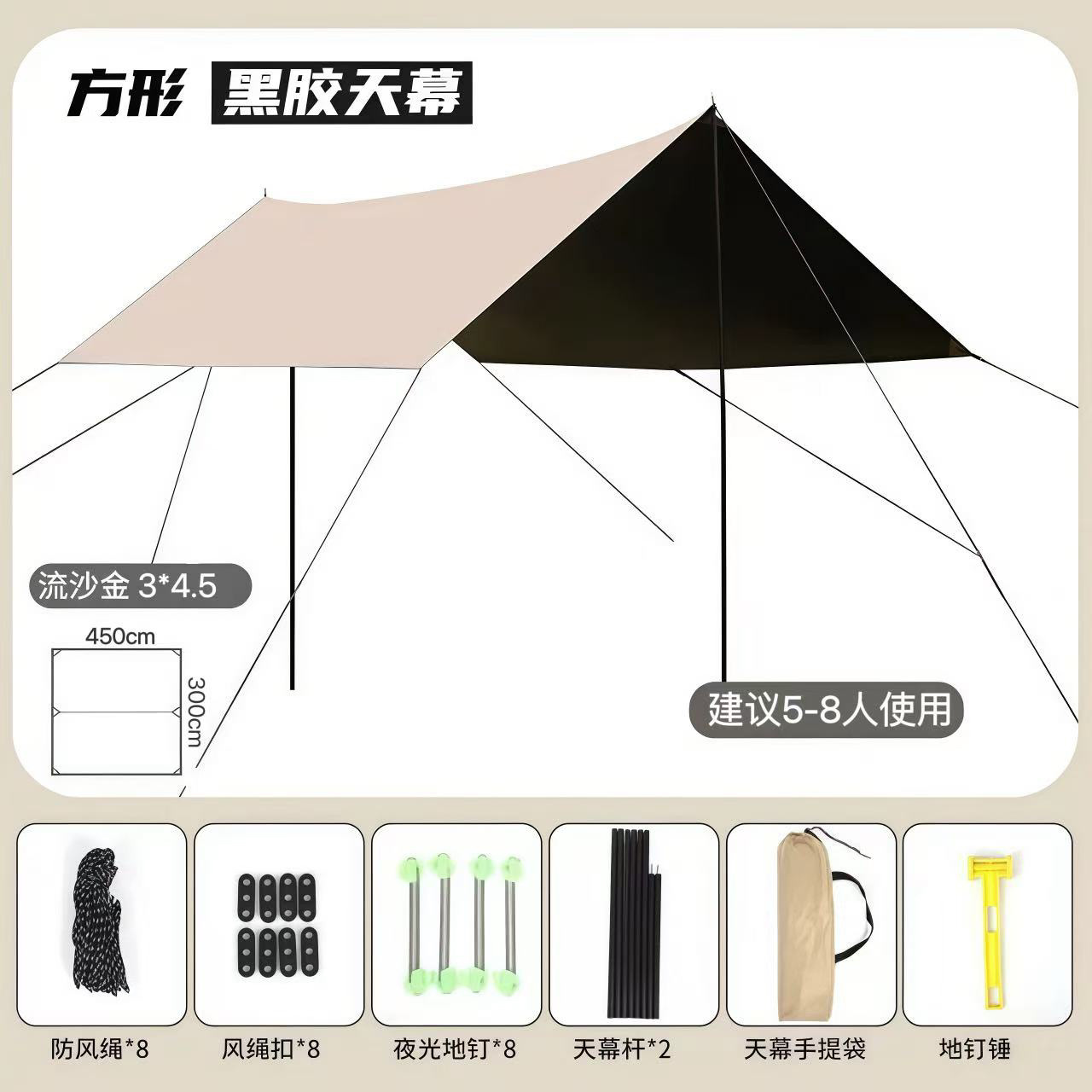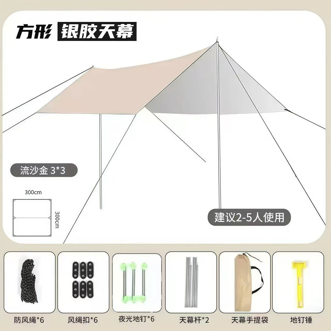야외 캐노피 텐트 캠핑 여행 피크닉 장비 두꺼운 태양 보호 및 방수 팔각형 검정색 접착제 실버 코팅 천막