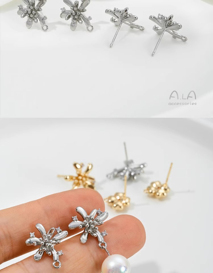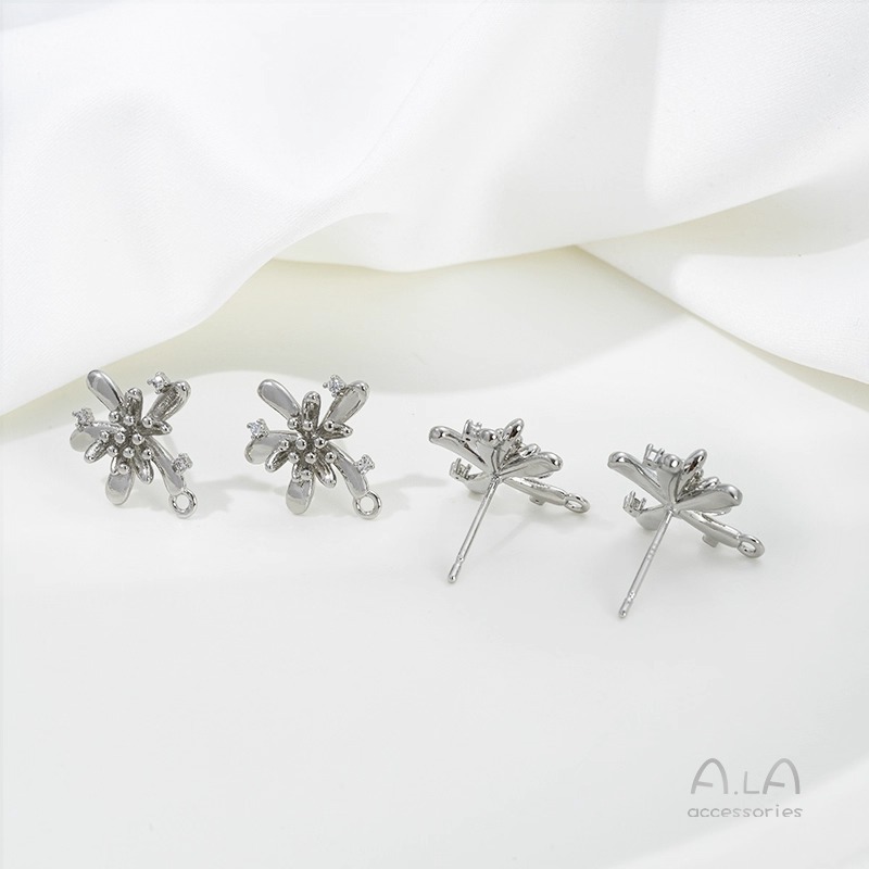 • R550-3 화이트 골드 지르코늄 플라워 스터드 귀걸이 1개