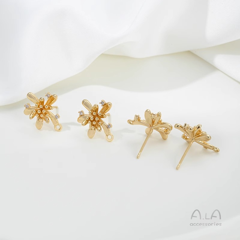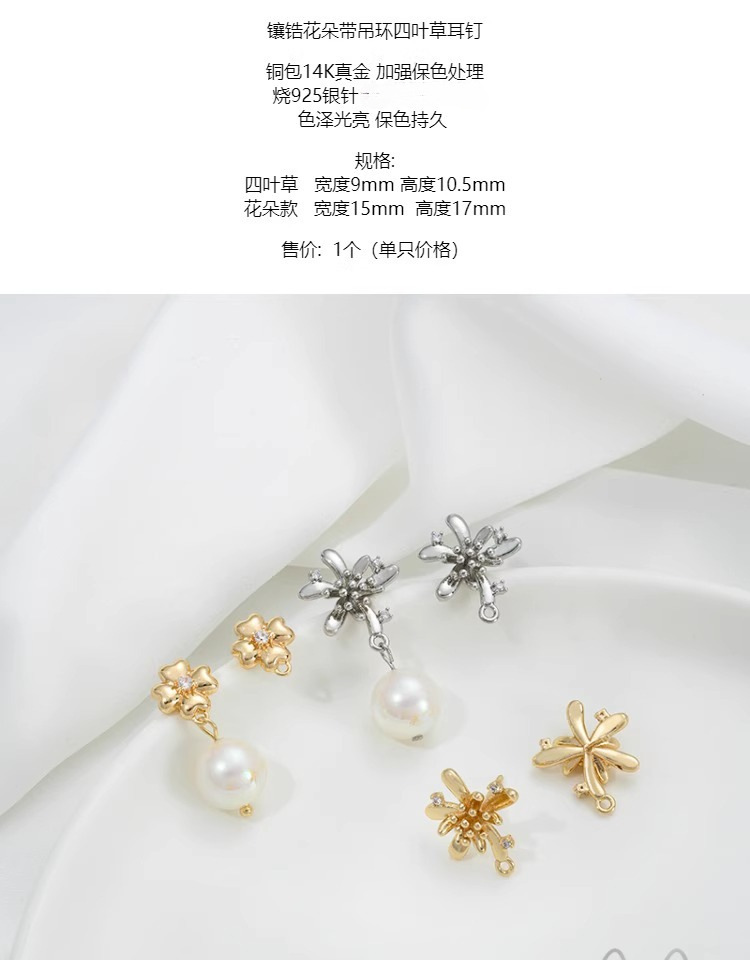 색상 보존 14K 금도금 지르코늄 꽃 펜던트 네잎 클로버 귀걸이 DIY 수제 귀걸이 액세서리 귀 보석 재료스토어 가기