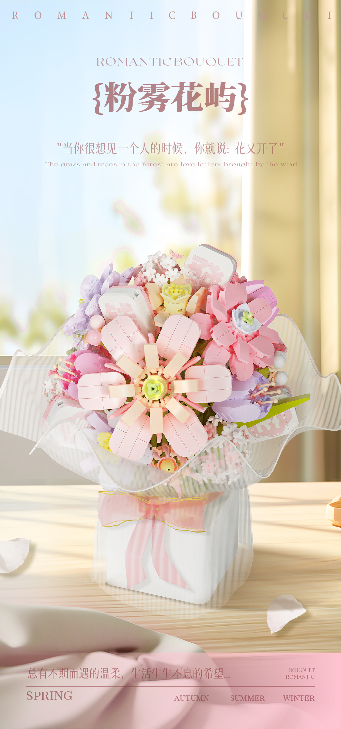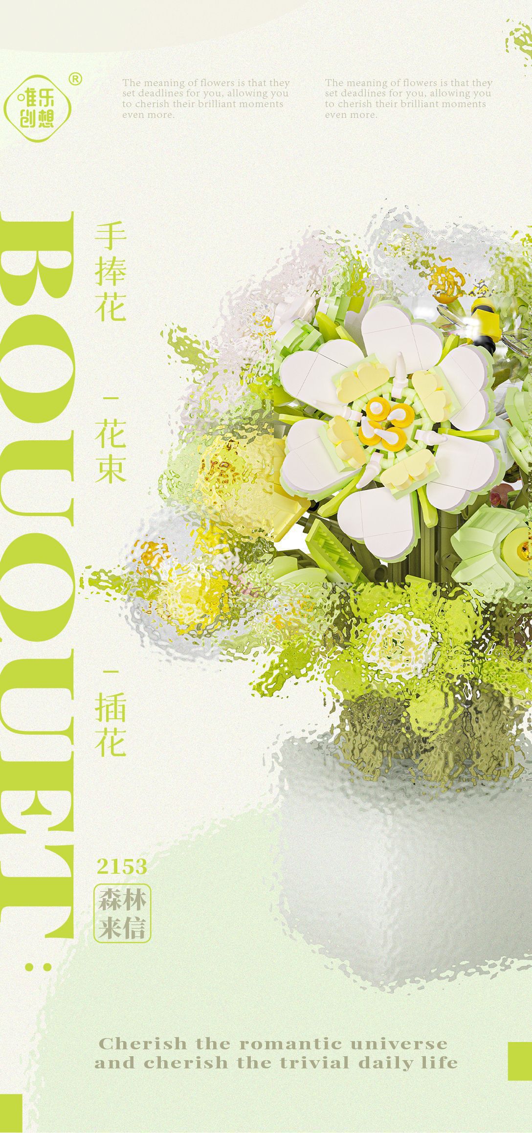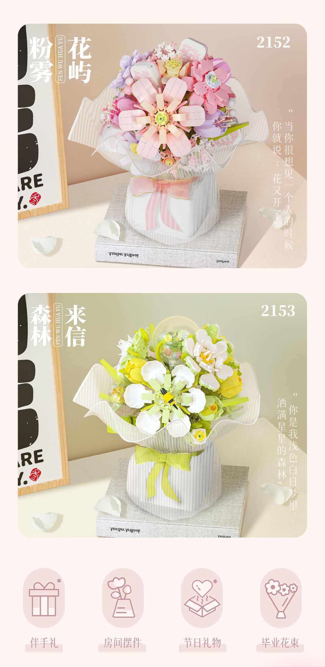 Weilechuangxiang WL2152-2153 영원한 빌딩 블록 꽃다발 장식품 미니 입자 조립 장난감 도매스토어 가기