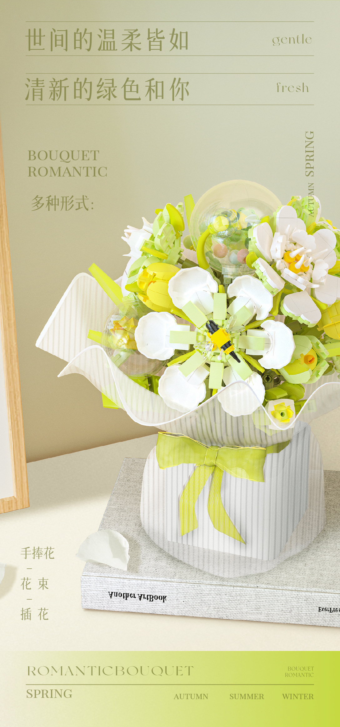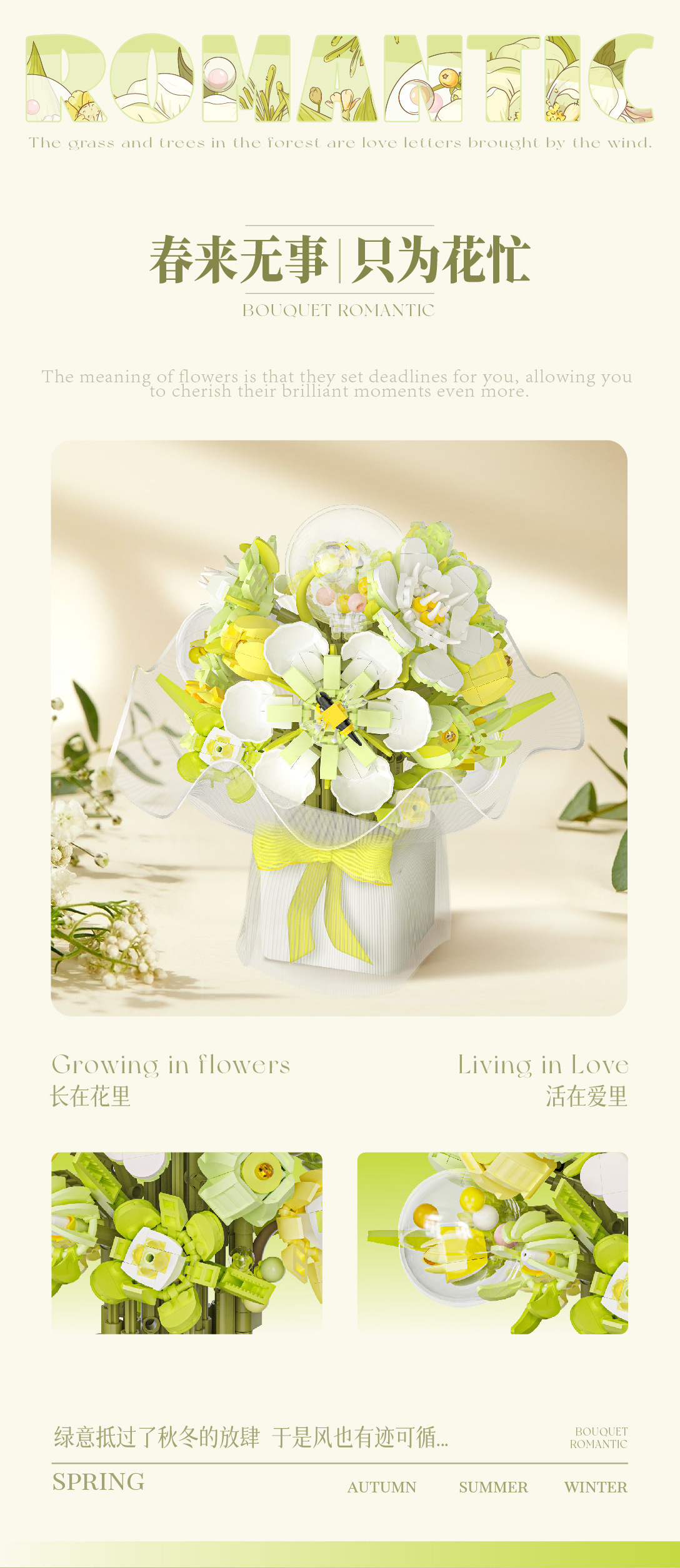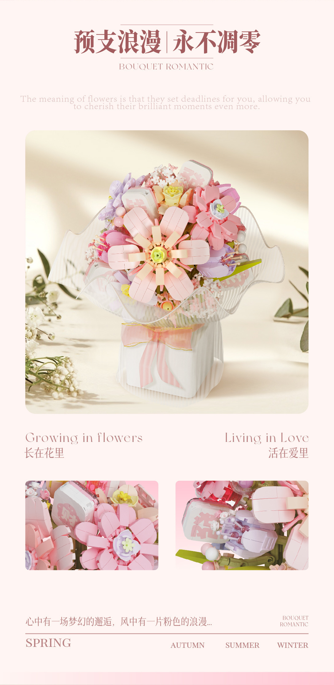 Weilechuangxiang WL2152-2153 영원한 빌딩 블록 꽃다발 장식품 미니 입자 조립 장난감 도매스토어 가기