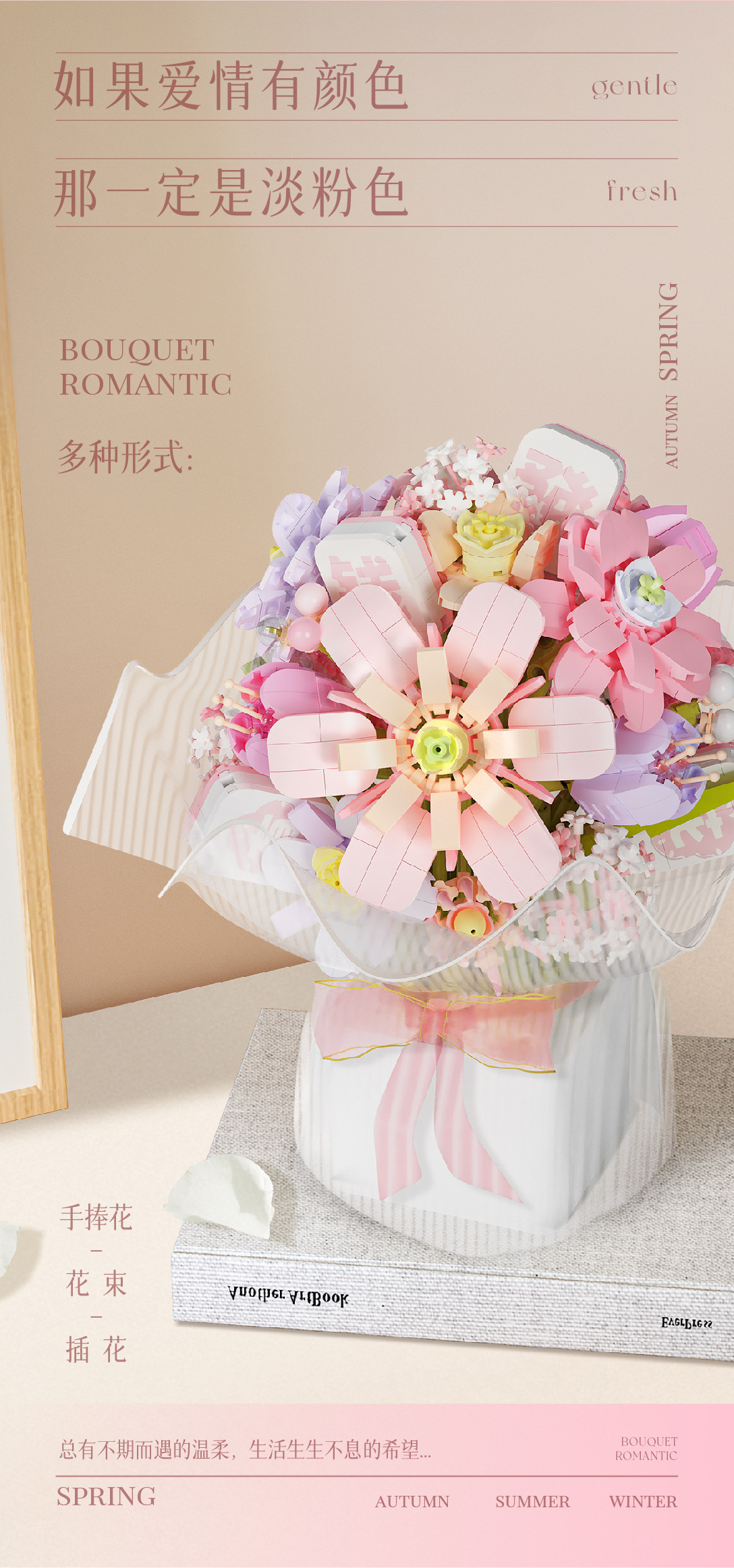 Weilechuangxiang WL2152-2153 영원한 빌딩 블록 꽃다발 장식품 미니 입자 조립 장난감 도매