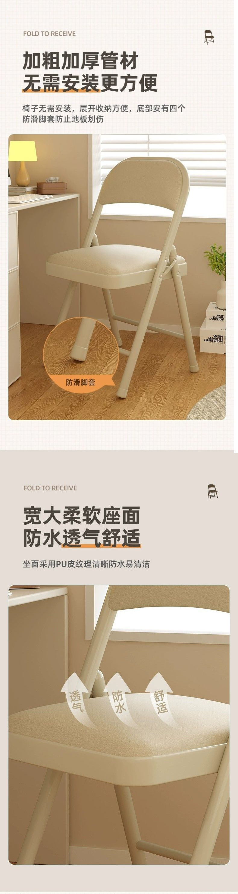 • 휴대용 모델 [흰색/흰색 프레임] 두꺼운 철제 프레임 + 플라스틱 의자 표면 ★ ☆
