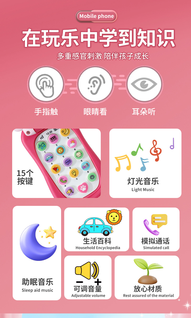 국경 간 아마존 대외 무역 아기 및 어린이 교육 조기 교육 전기 소리 및 빛 플립 라이트 뮤직 휴대 전화 장난감스토어 가기