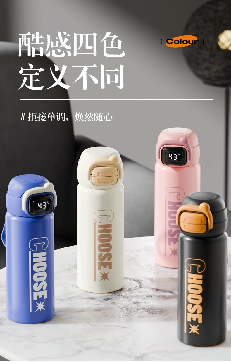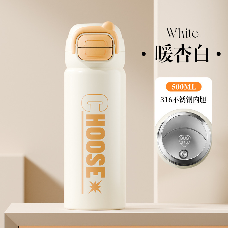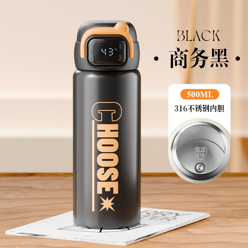 간단한 문자 더블 드링킹 바운스 컵 316 스테인레스 스틸 디지털 디스플레이 절연 컵 학생 워터 컵 휴대용 컵