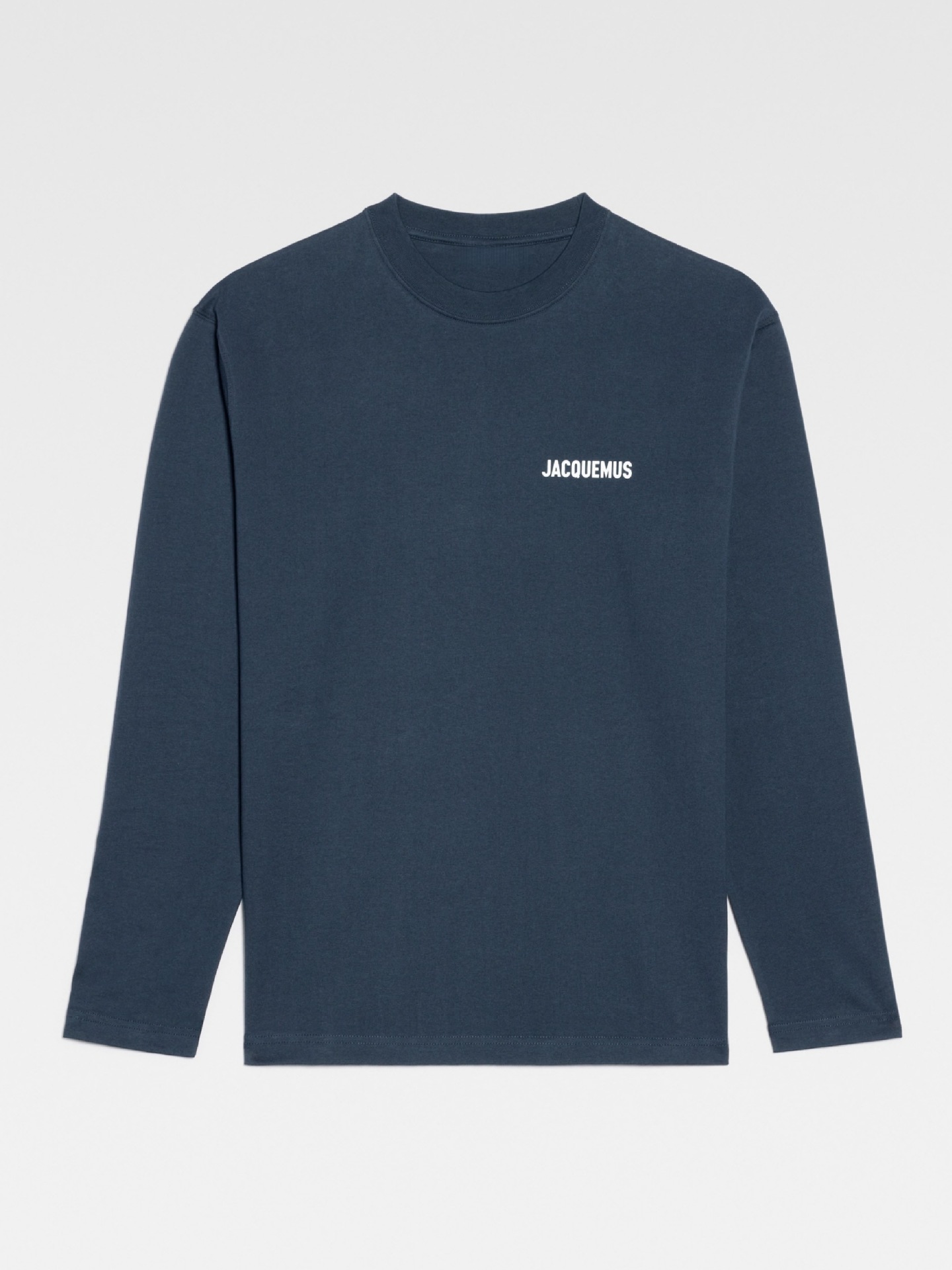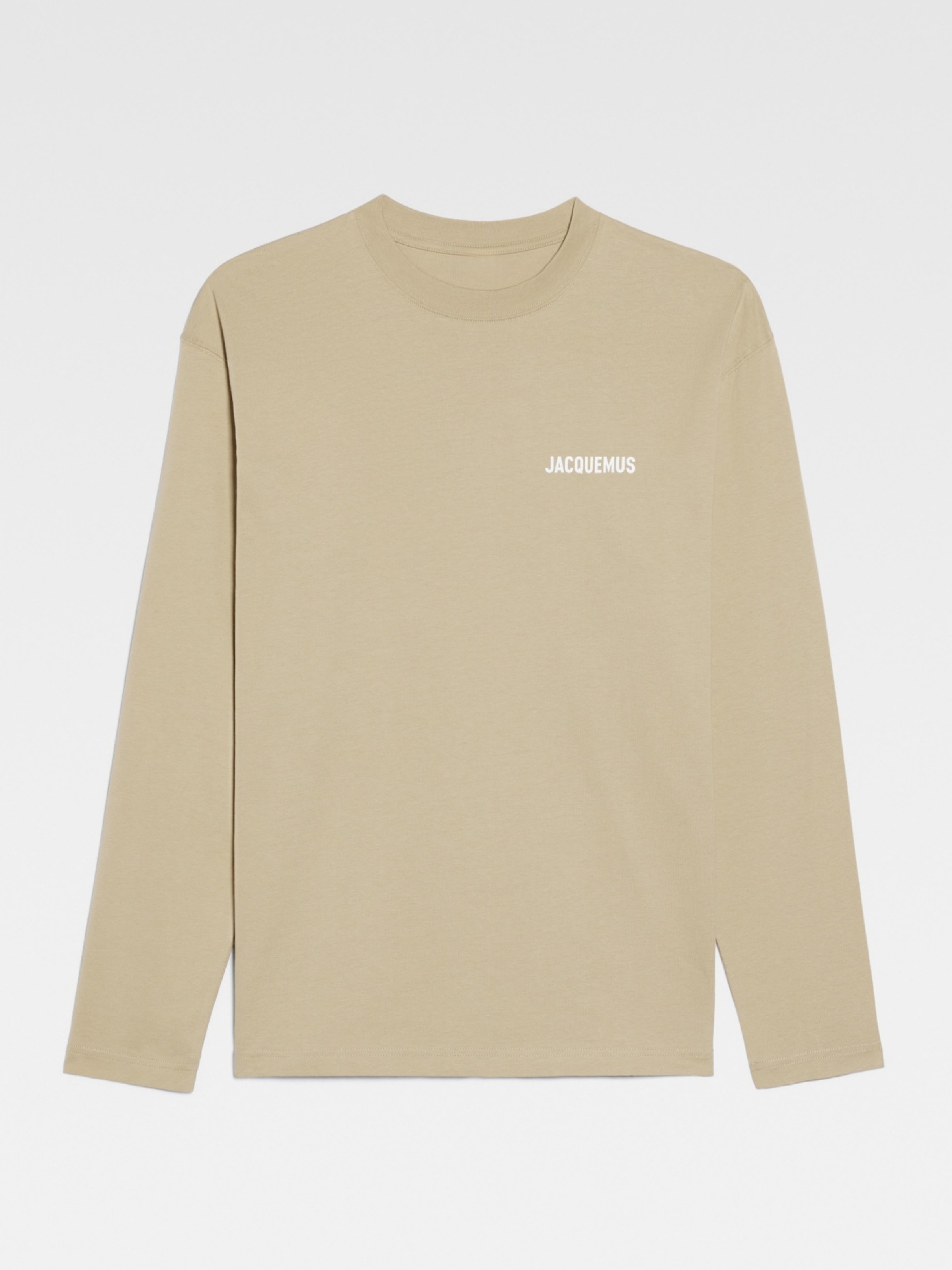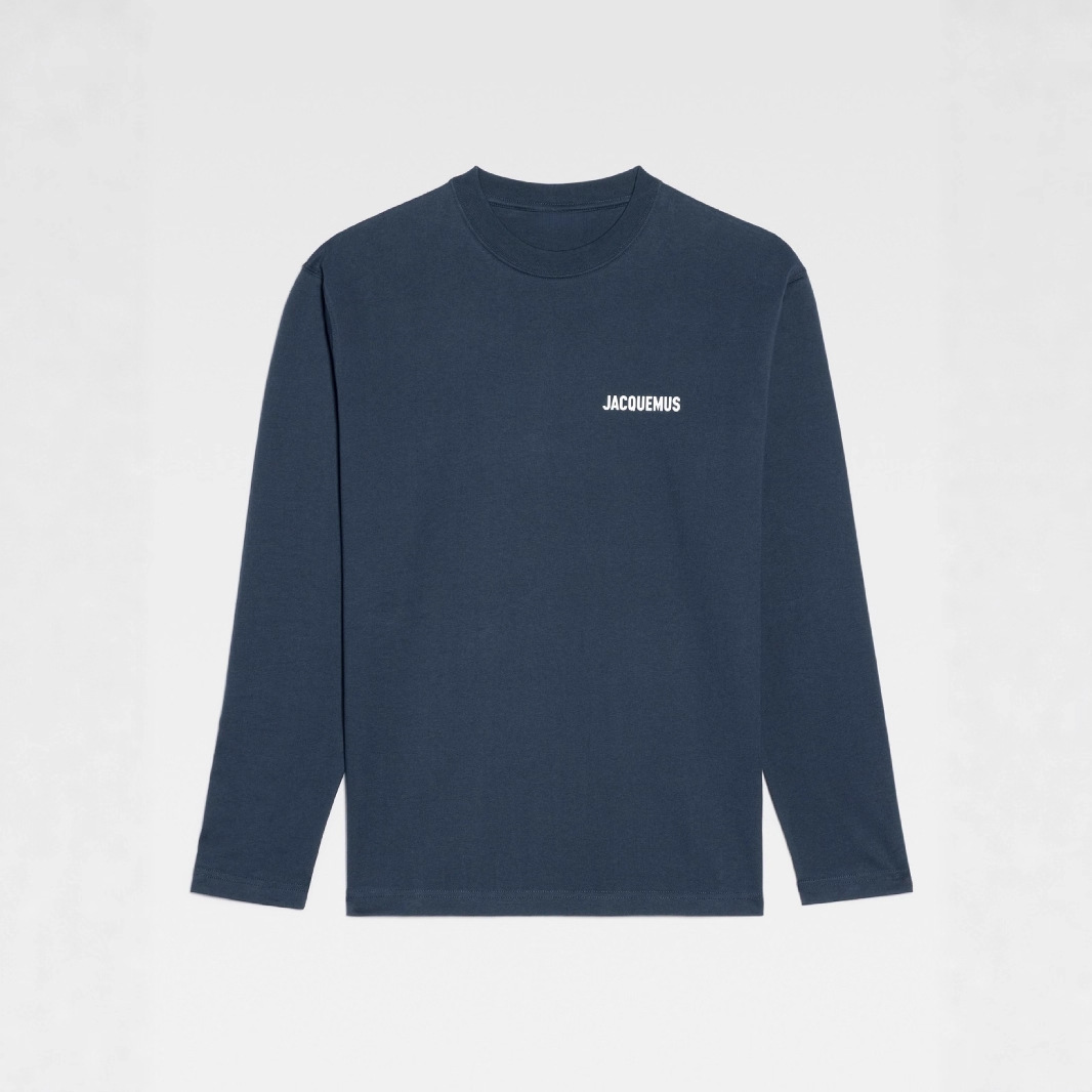 25번째 초가을 캐주얼 솔리드 컬러 레터 프린트 유니섹스 라운드 넥 긴팔 티셔츠 남성용 Jacquemus 탑