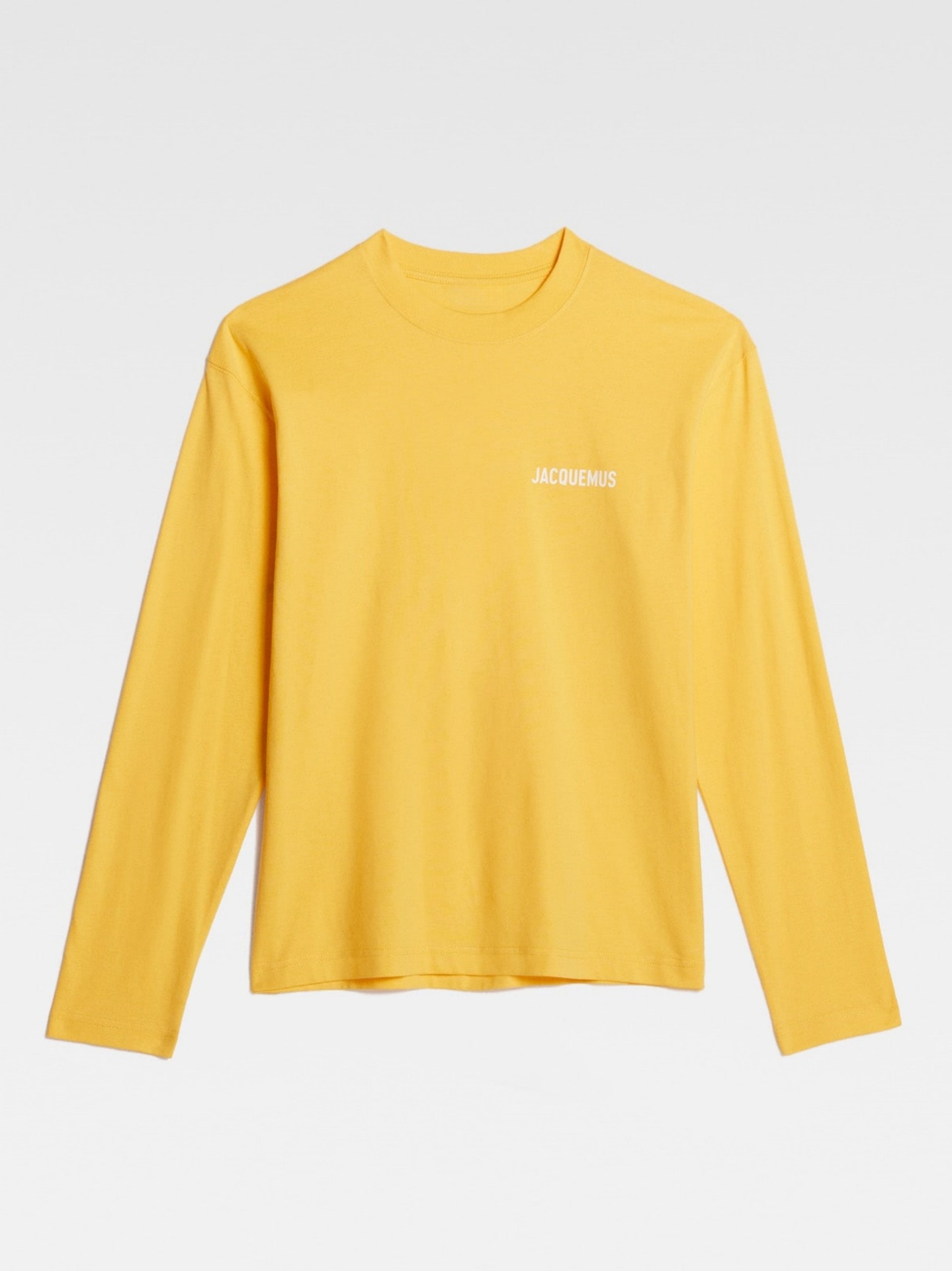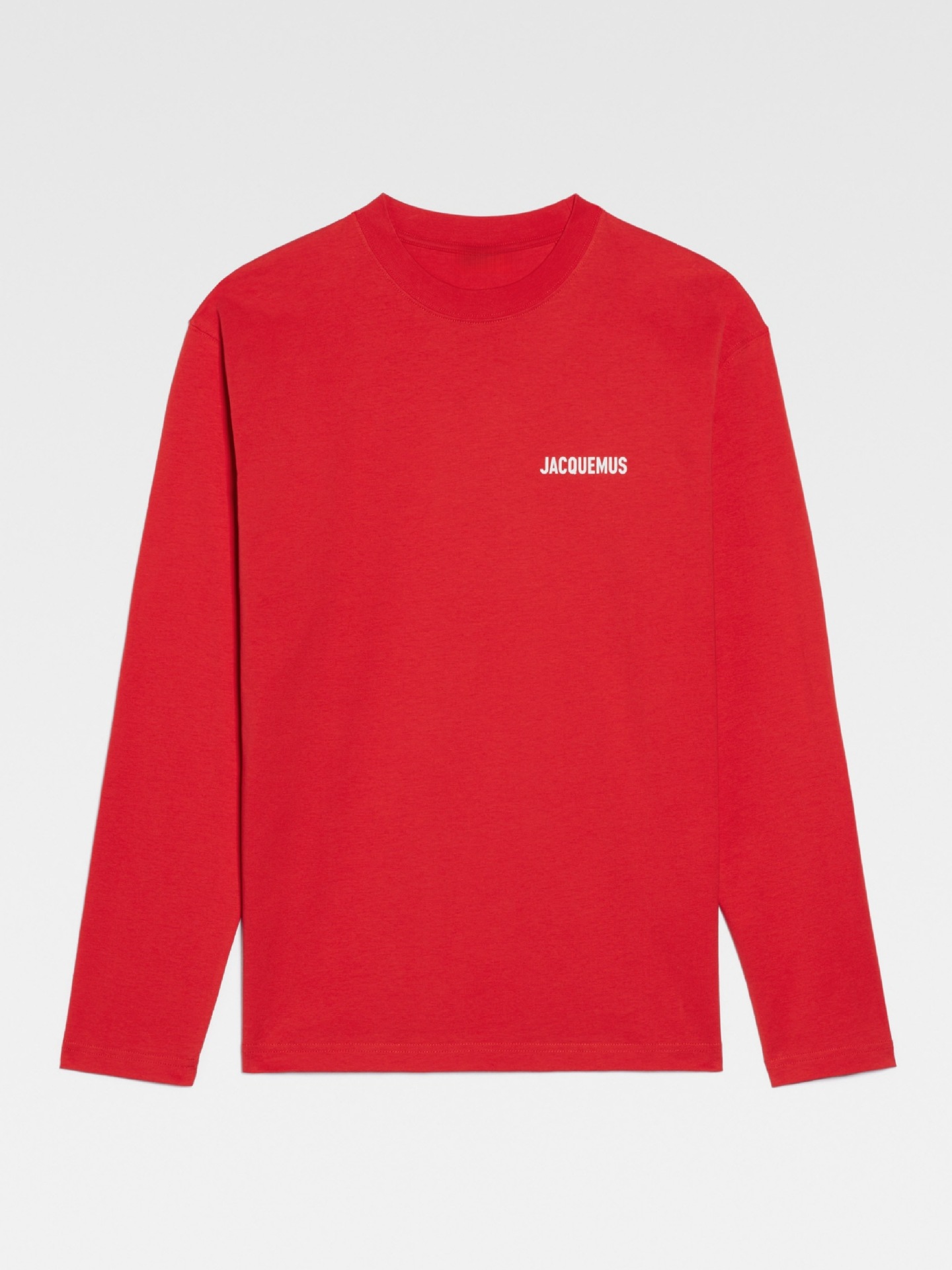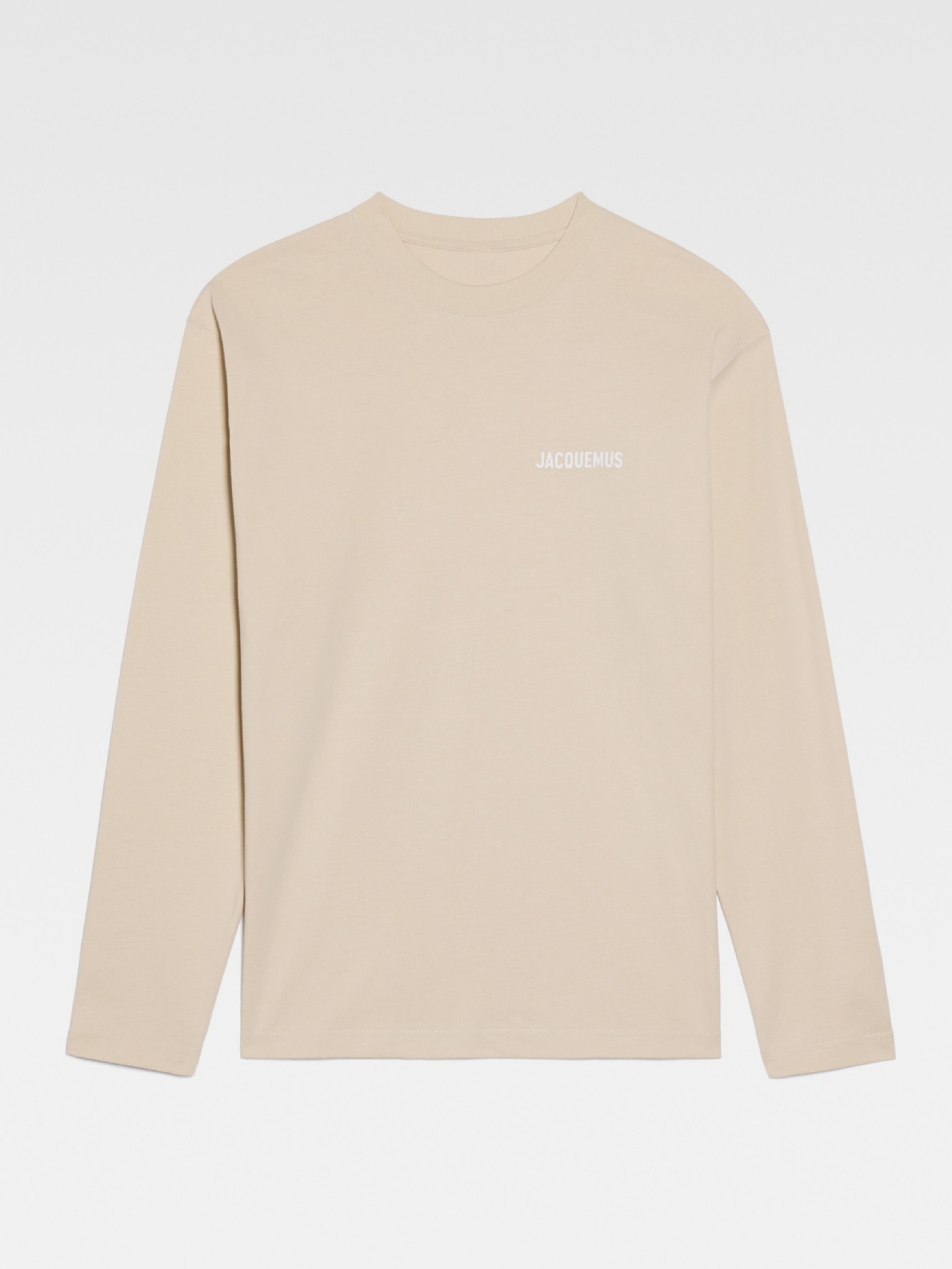 25번째 초가을 캐주얼 솔리드 컬러 레터 프린트 유니섹스 라운드 넥 긴팔 티셔츠 남성용 Jacquemus 탑
