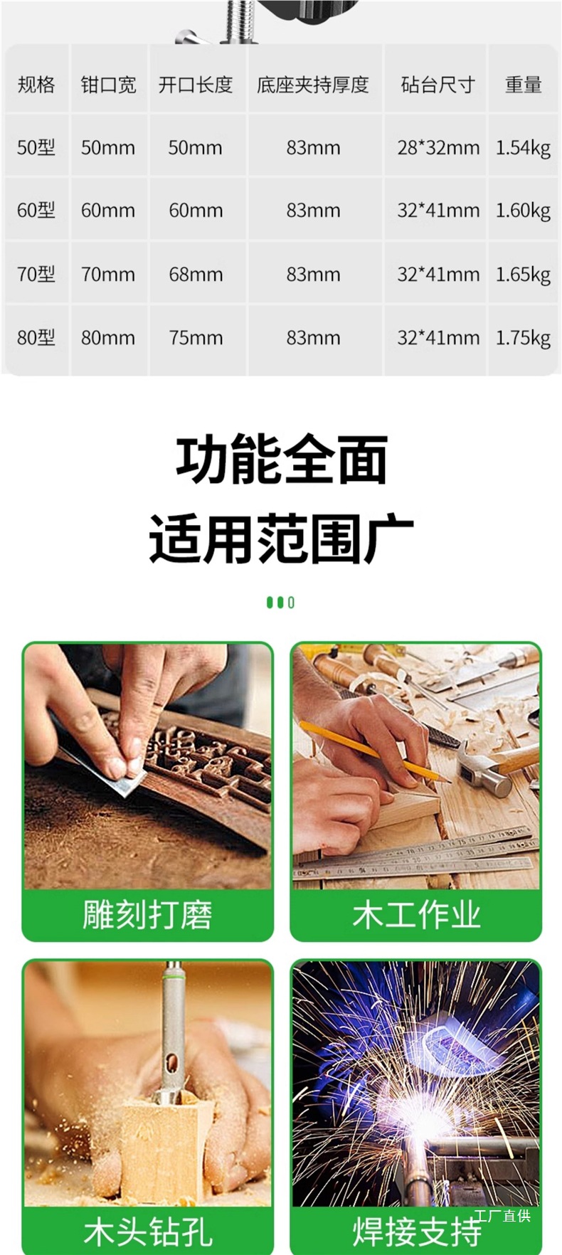 • 80 조 주철 바이스(미끄럼 방지 패드 + 장갑 포함)