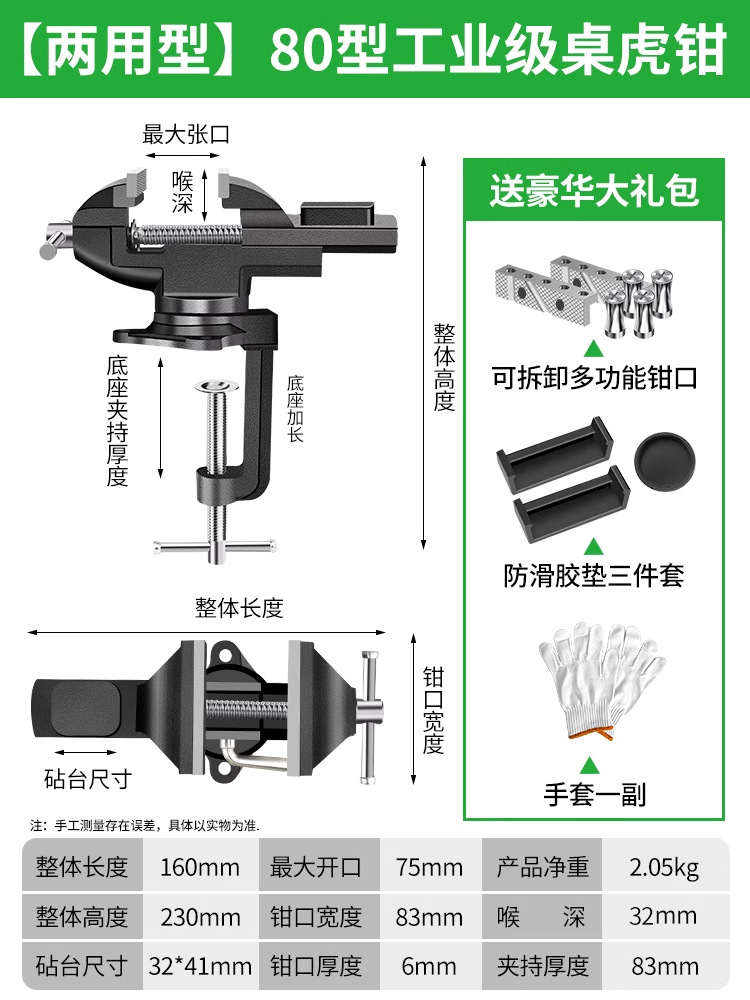 • [Quick-Dual Use Type] 80조 주강 바이스 + 탈착식 다기능 조 (미끄럼 방지 패드 + 장갑 포함)