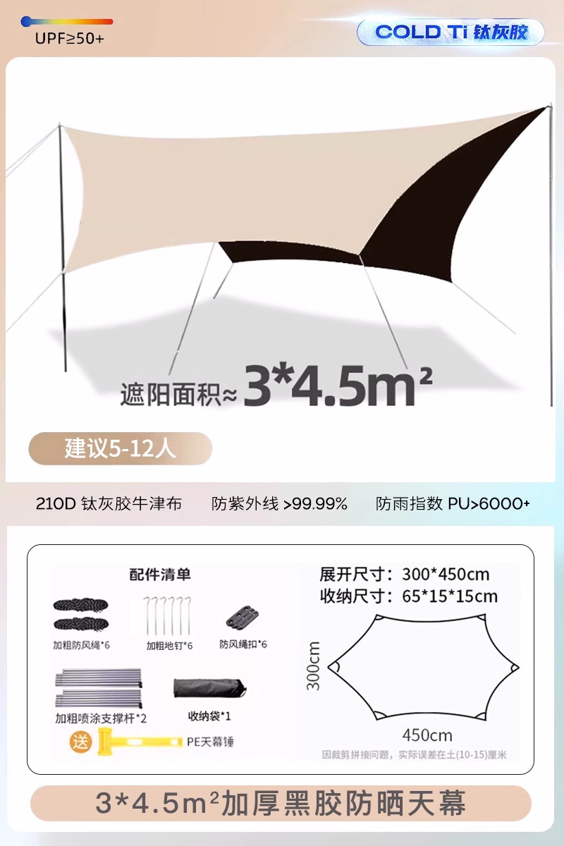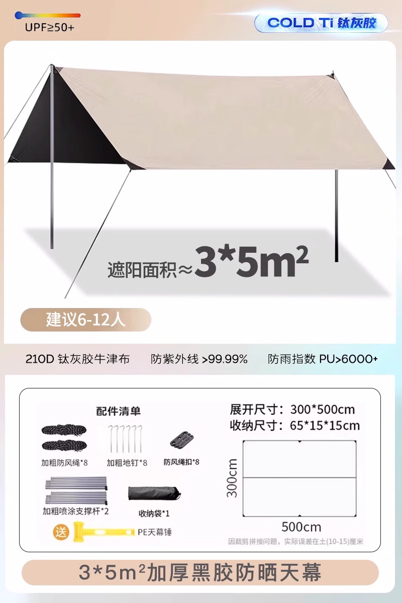 • Nezha 뉴 퀵샌드 골드 [3.3*4.5m] 풀 블랙아웃 자외선 차단제 콜드 티타늄 코팅 실버 - 4~10명에게 권장