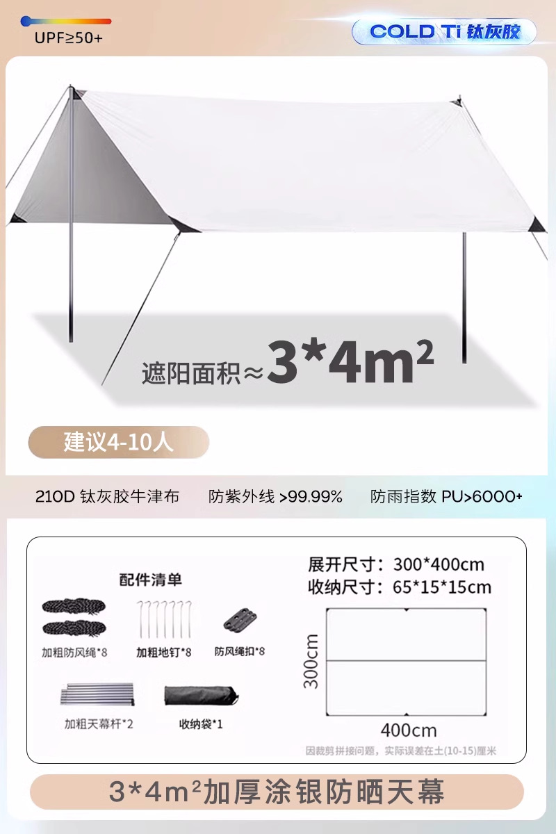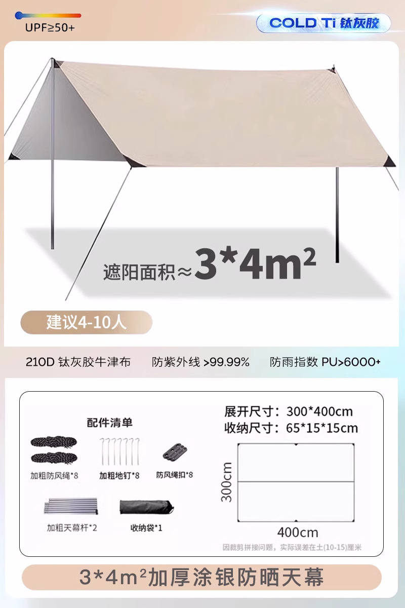 • Quicksand Gold [3*4m] 완전 암막, 자외선 차단, 쿨 티타늄 코팅 실버 - 4~10인 권장