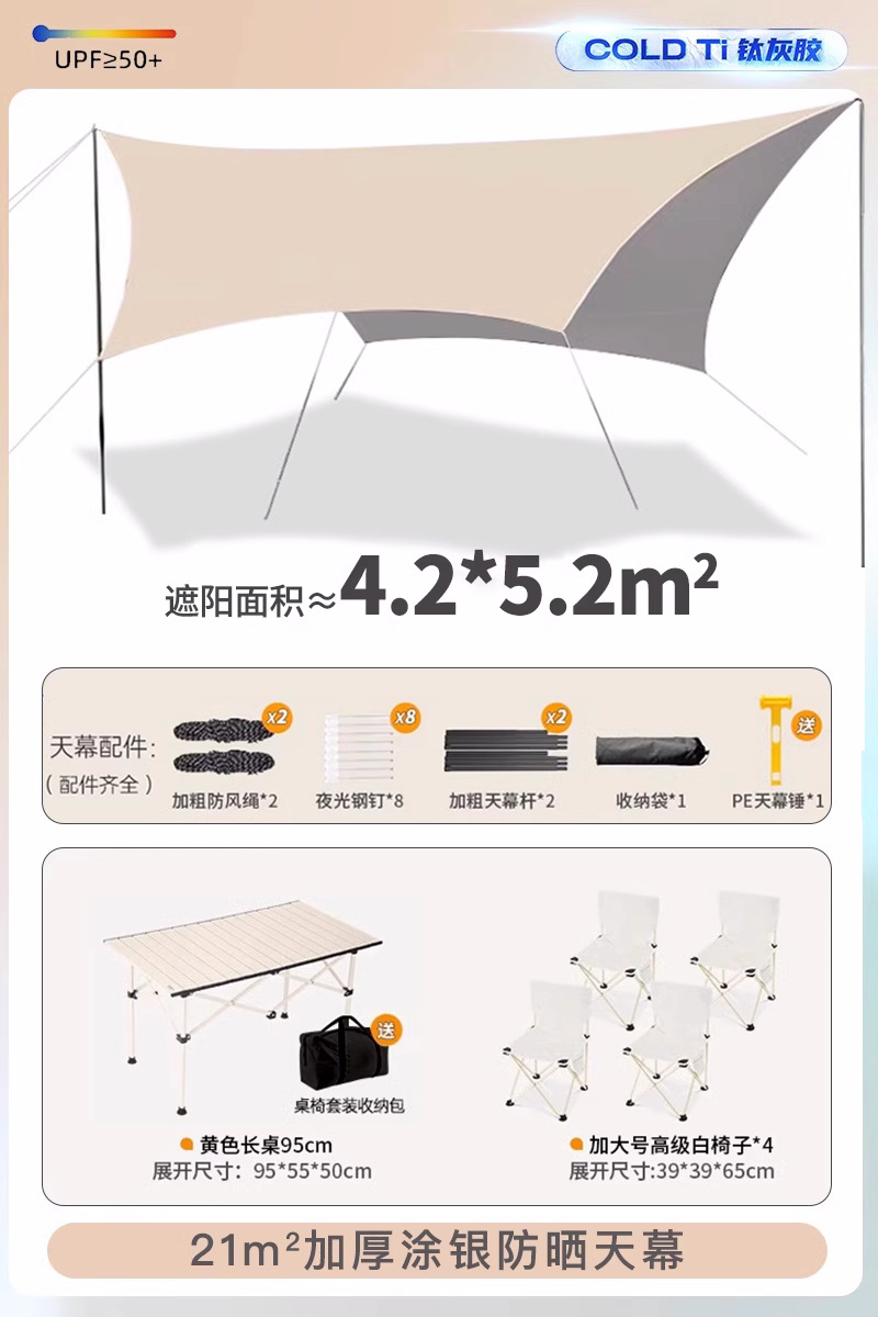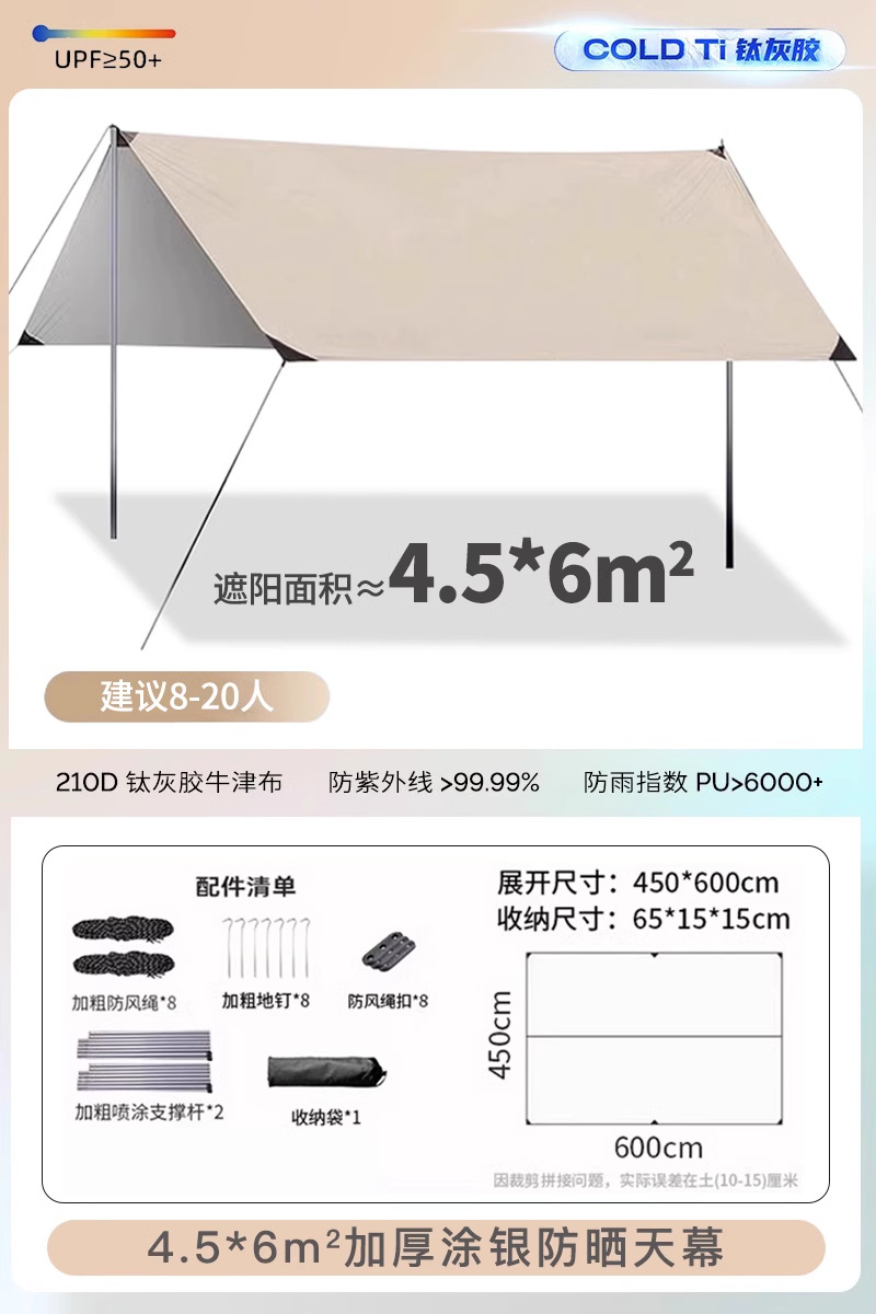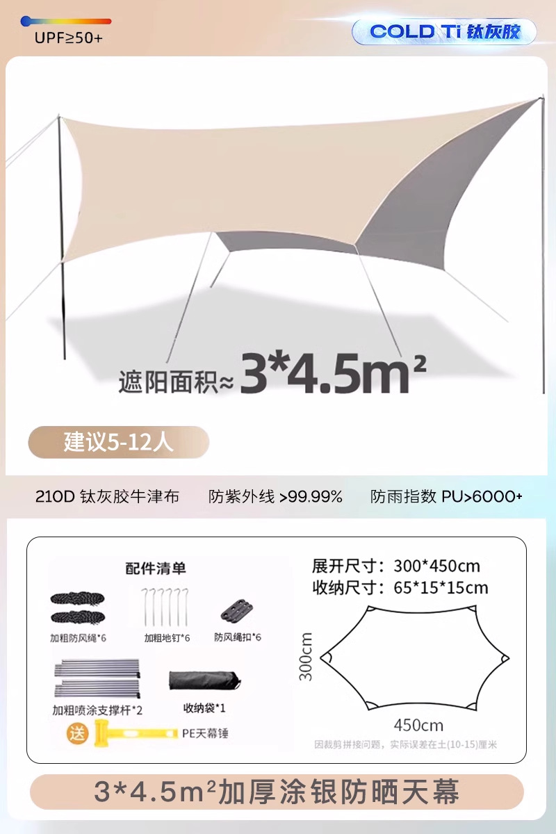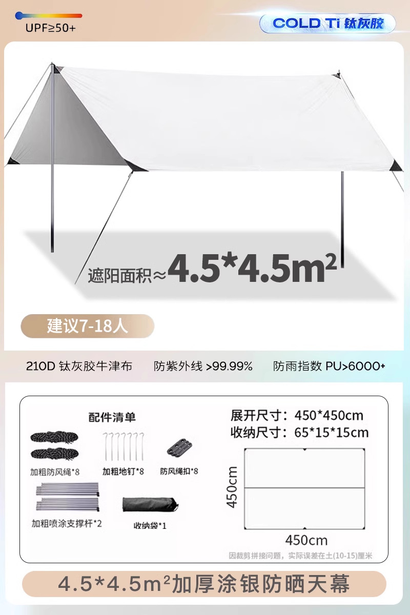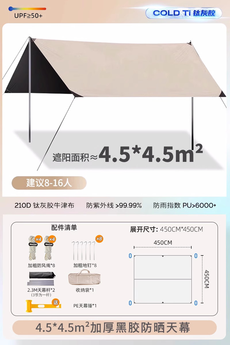 • Quicksand Gold [4.5*4.5m] 완전 암막, 자외선 차단, 쿨 티타늄 코팅 실버 - 7~18인 권장