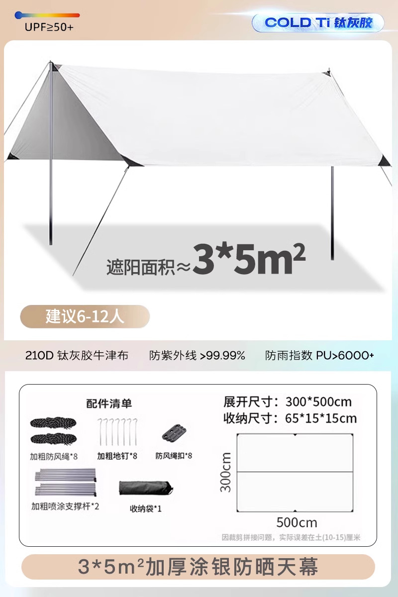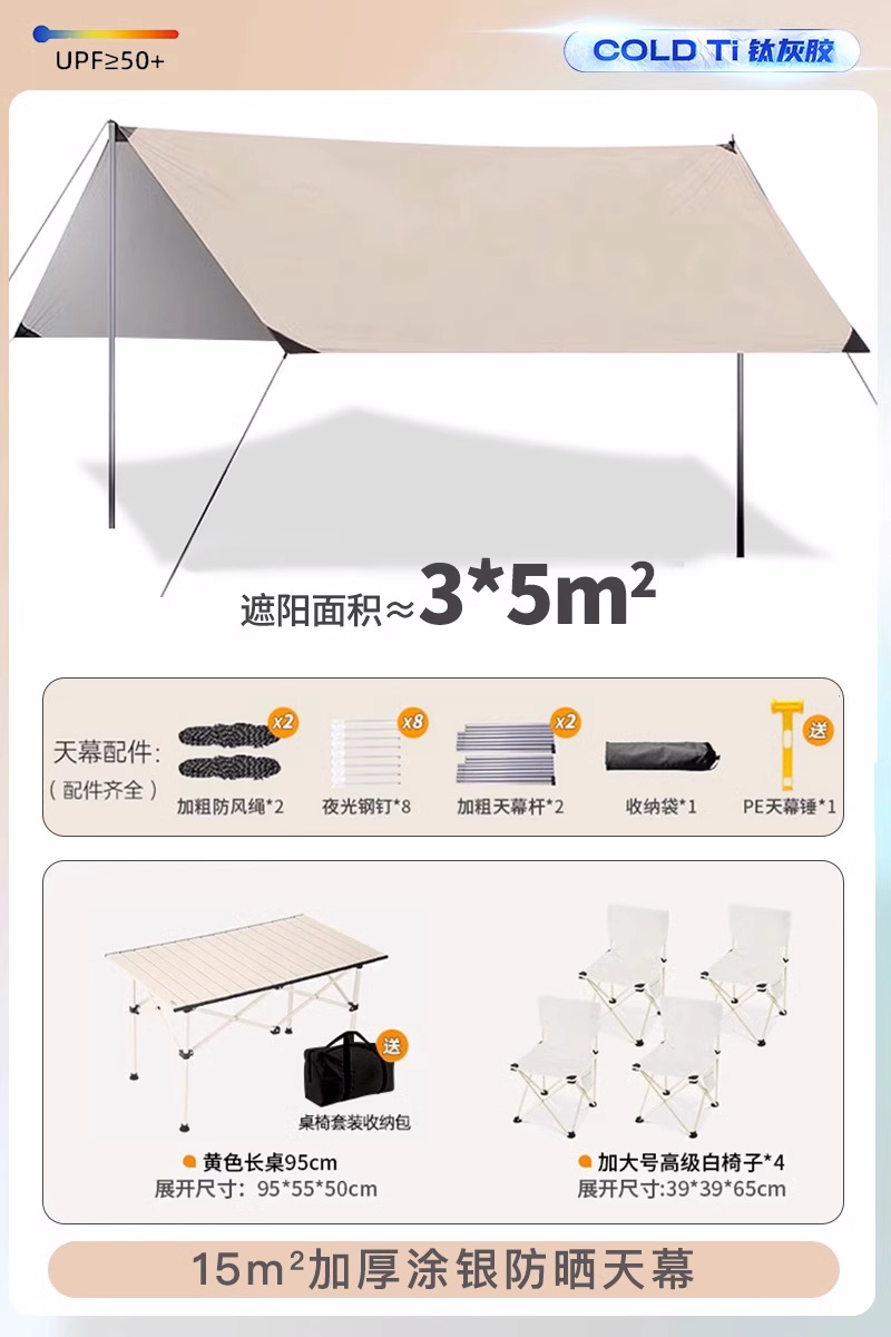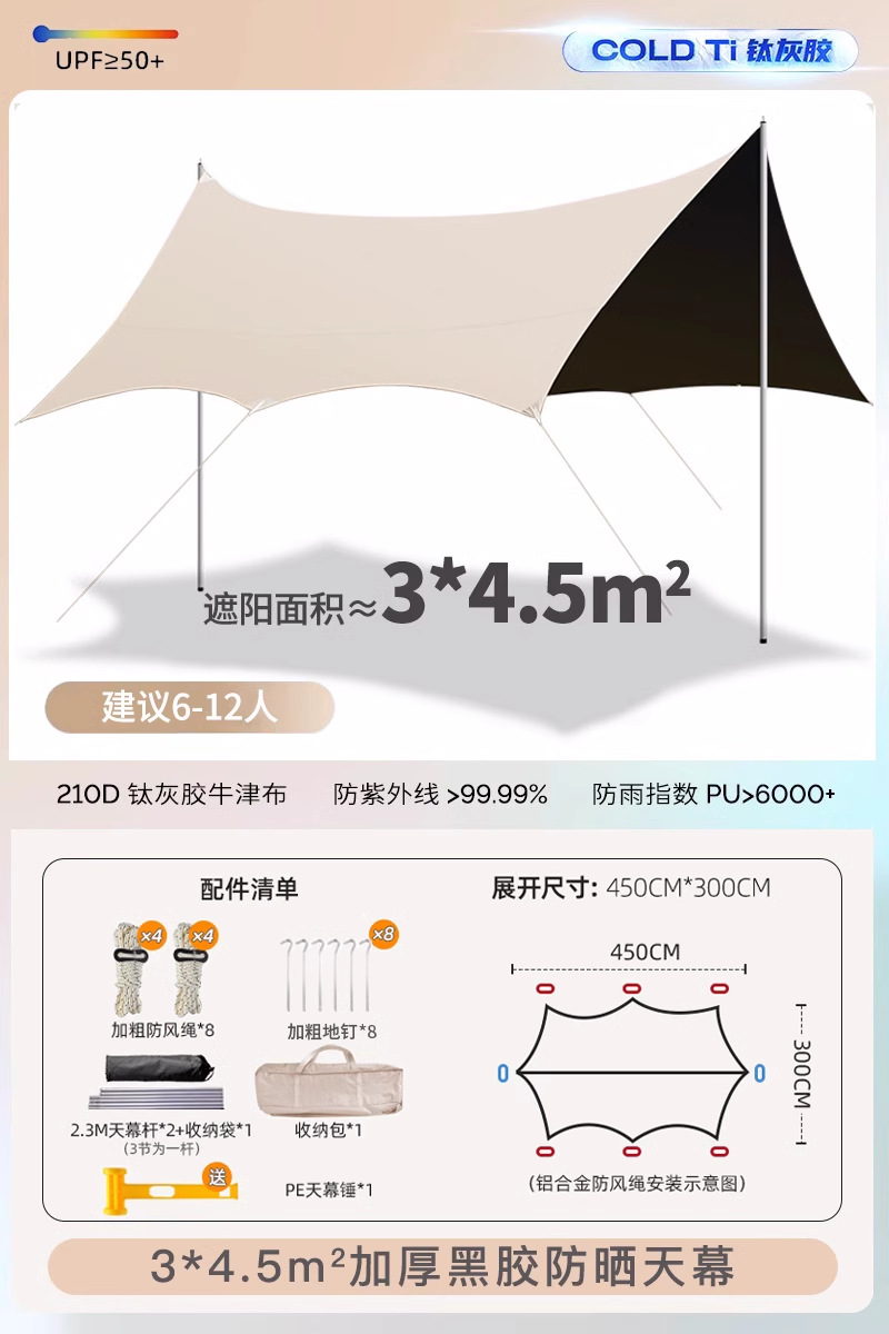 • Quicksand Gold [4.5*6m] 완전 암막, 자외선 차단, 쿨 티타늄 코팅 실버 - 8~20명 권장