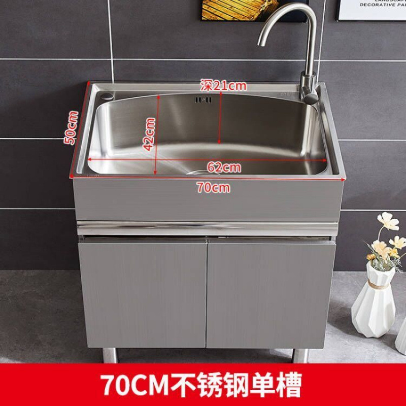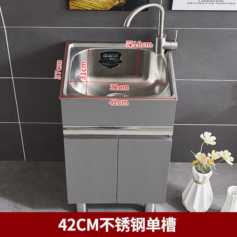 304 스테인레스 스틸 세탁 캐비닛 발코니 싱크 캐비닛 일체형 손 세면대 세면대 단단한 나무 캐비닛 조합 바닥스토어 가기