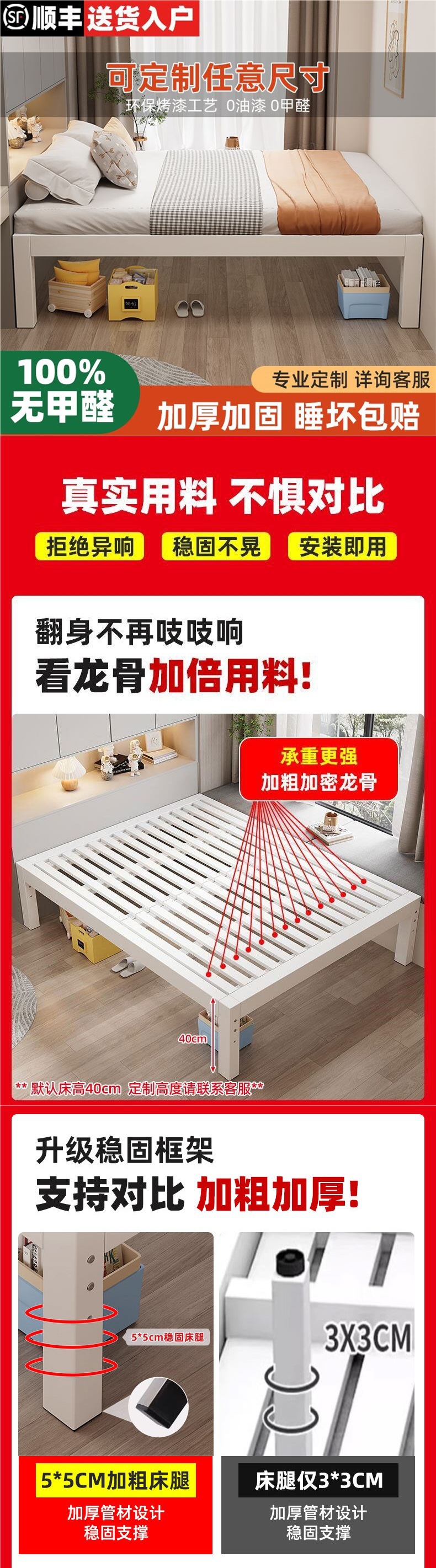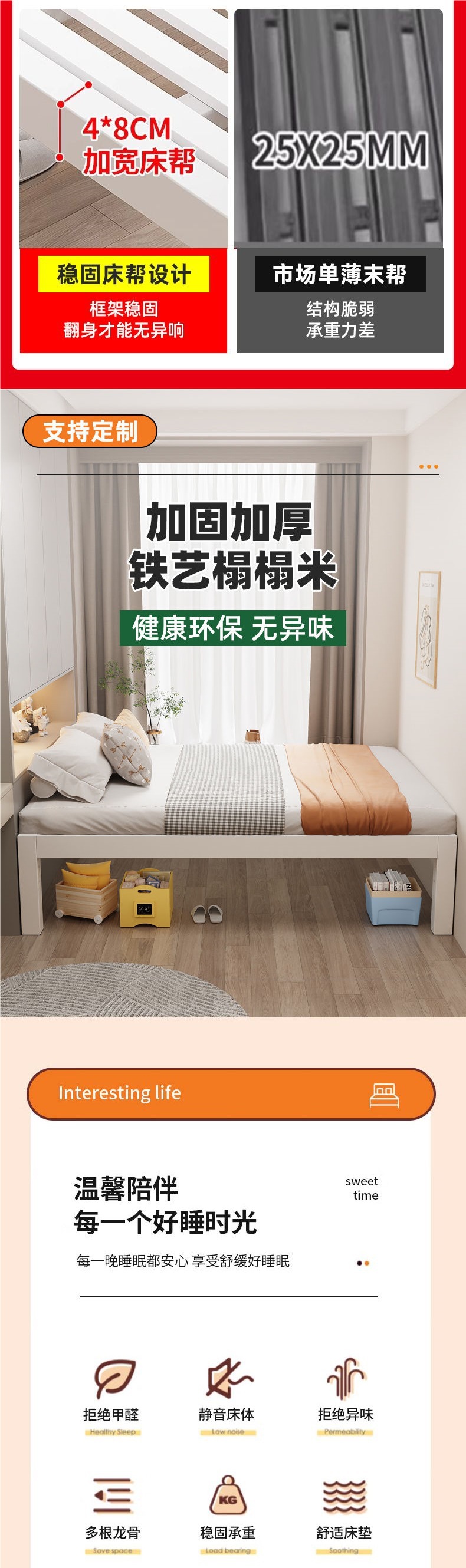 다다미 철제 침대 임대 집 침대 프레임 작은 아파트 모든 크기 침대 옆 없음 가정용 더블 원목 침대 무역