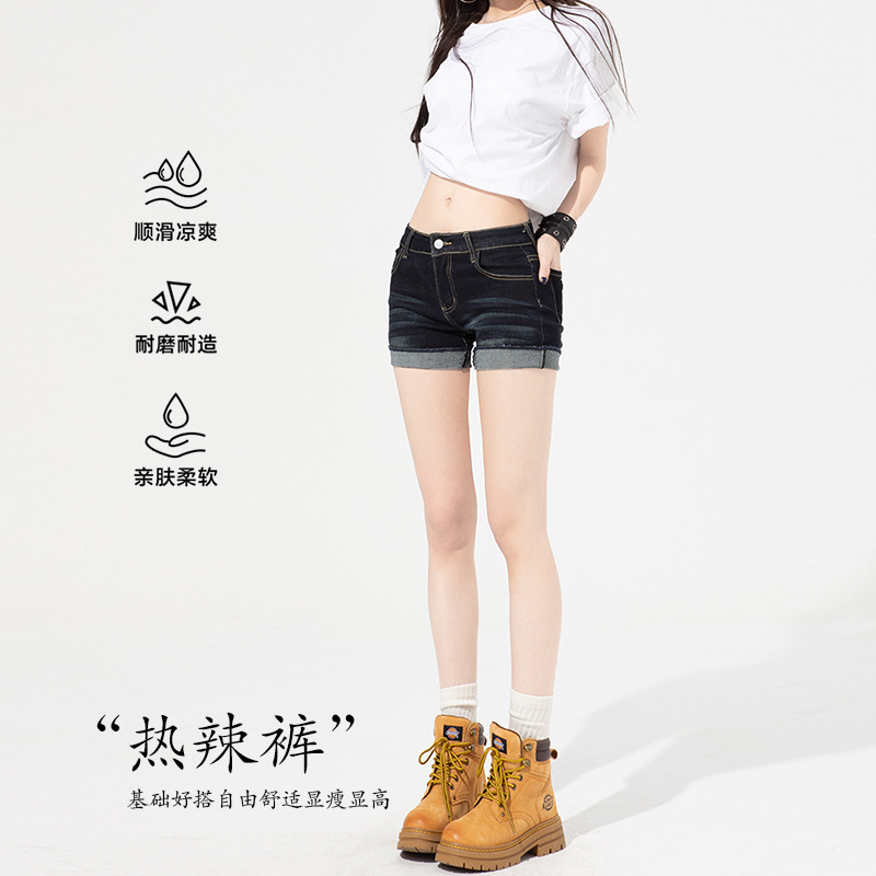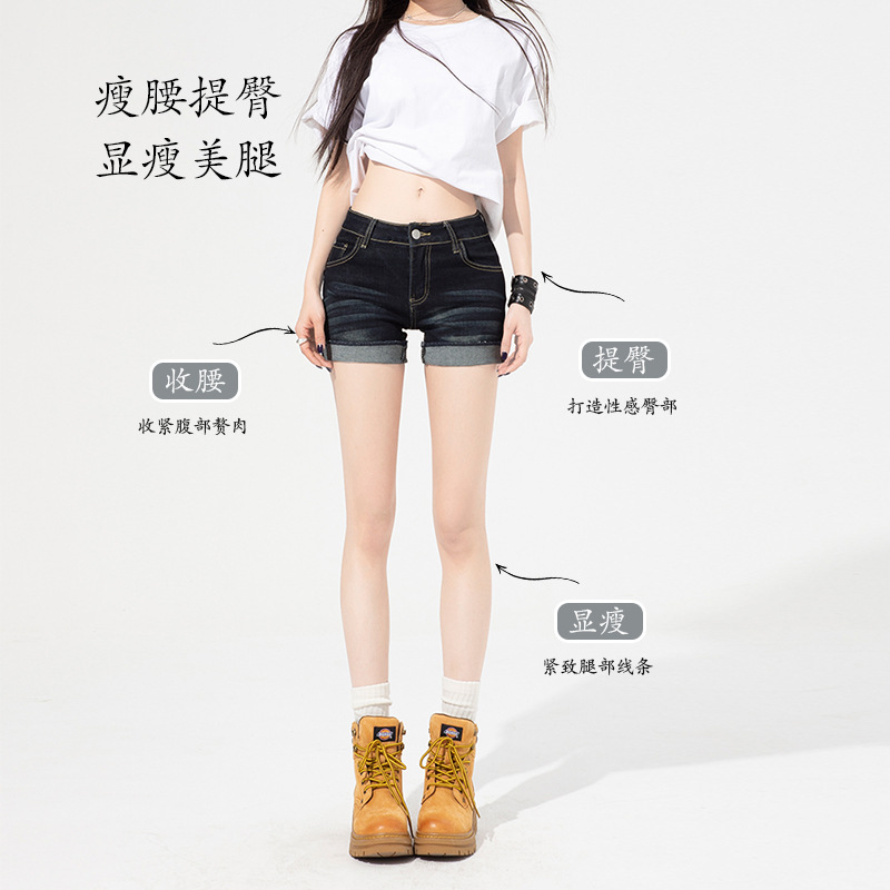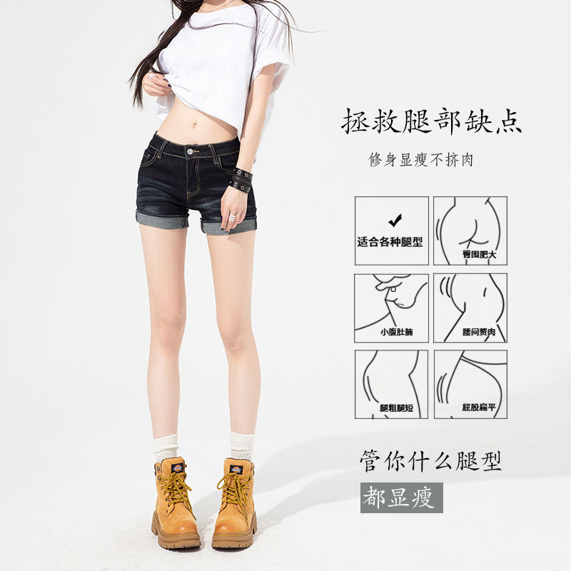 여성을 위한 진한 파란색 겉옷 다용도 디스트레스드 데님 반바지 2025 여름 새로운 스타일 풍부한 사이즈 슬림핏 얇은 청바지스토어 가기