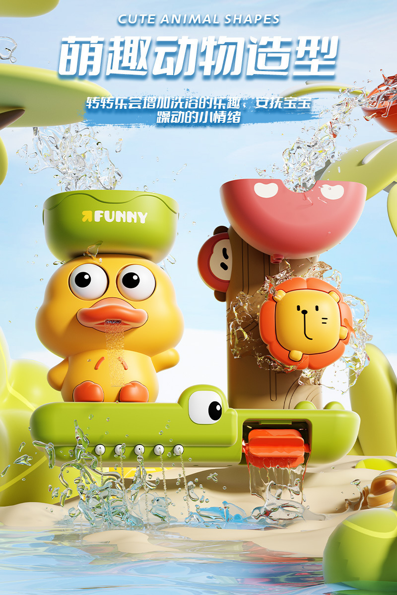 국경 간 어린이 욕실 물 만화 귀여운 오리 회전 장난감 물 오리 물 스프레이 세트 목욕 장식품스토어 가기
