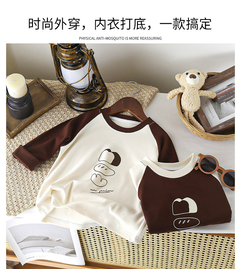 Leyangjia 2025 새로운 봄 옷 소년 라글란 슬리브 편지 긴 소매 탑 소녀 만화 어린이 라운드 넥 긴 소매