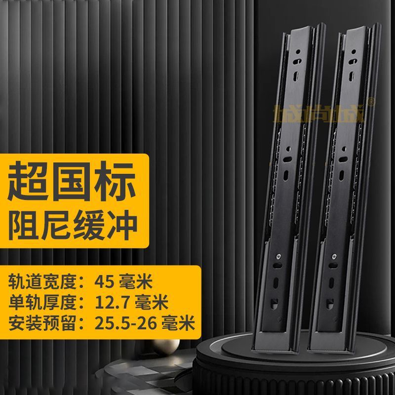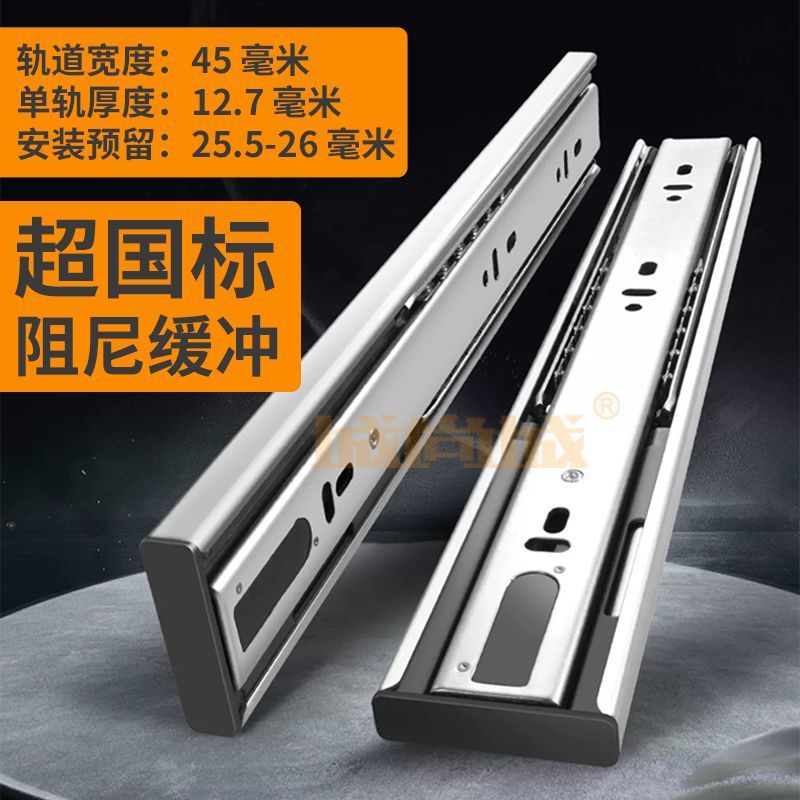 두꺼운 서랍 트랙 스테인레스 스틸 댐핑 버퍼 헤비 듀티 3 섹션 레일 자동 유압 가정용 캐비닛 슬라이드 확장