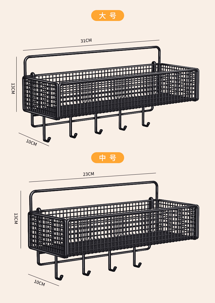 • 표준 업그레이드 메쉬 바구니 대형 검정색 + 후크 1개
