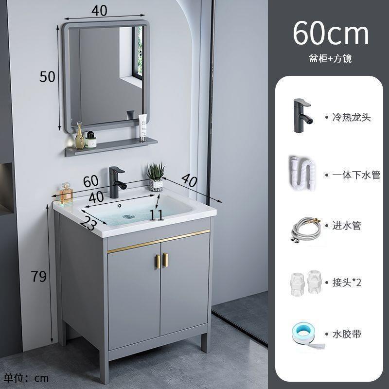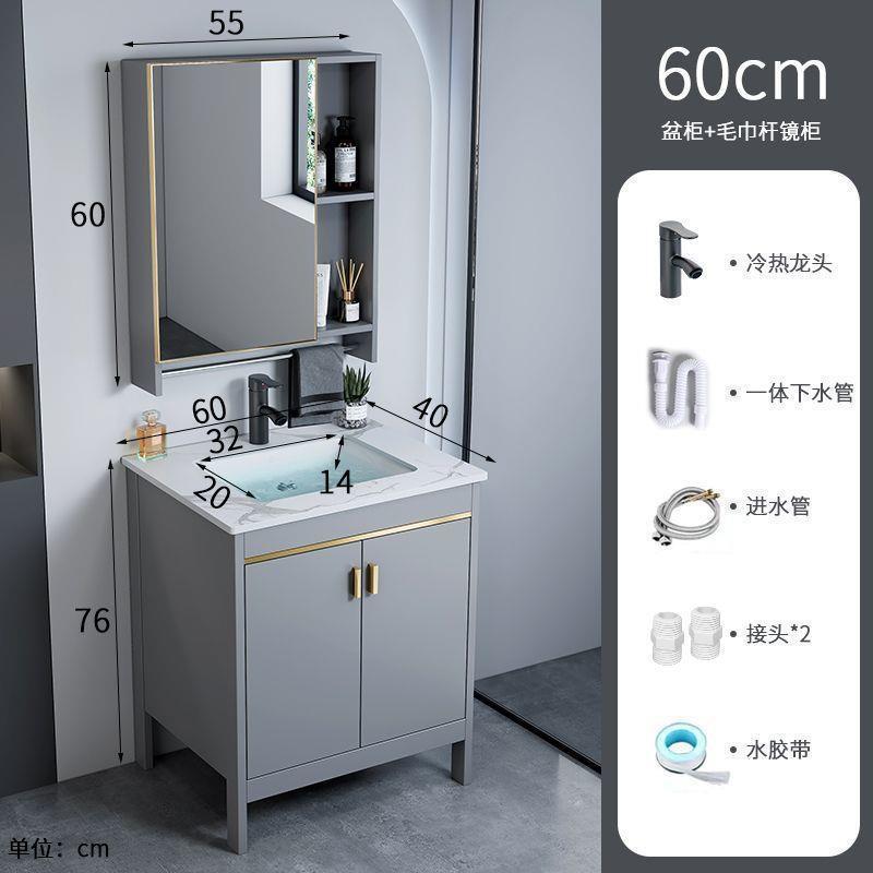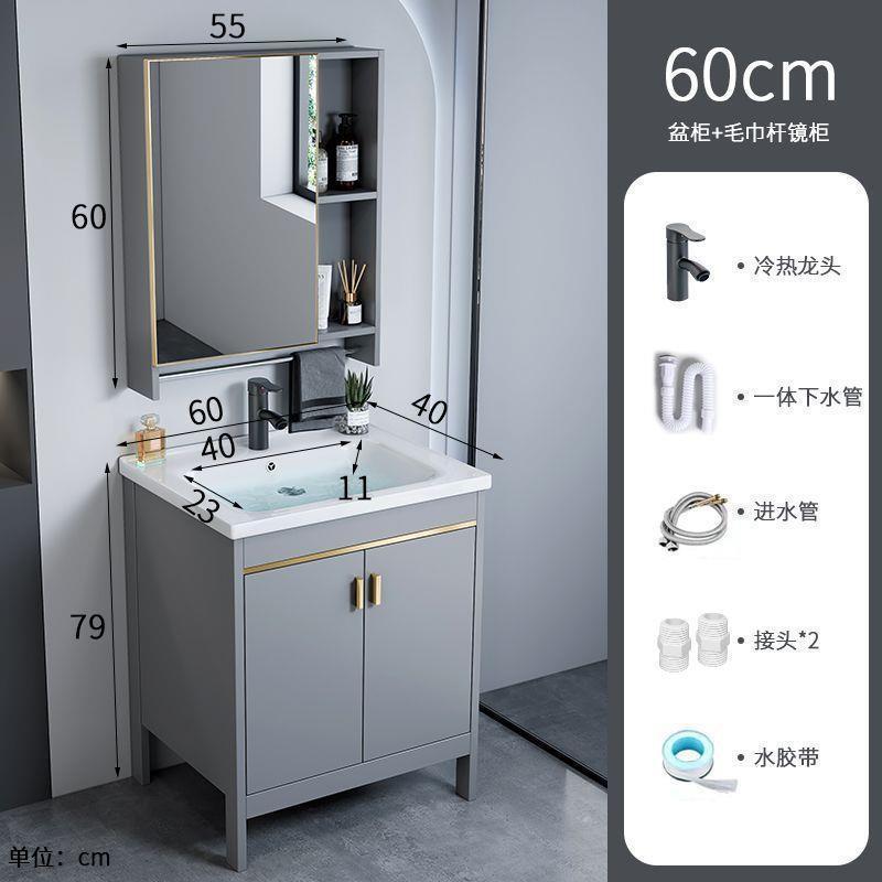 • 60 신사 그레이 플로어 스탠딩 + 타월 바 거울 캐비닛