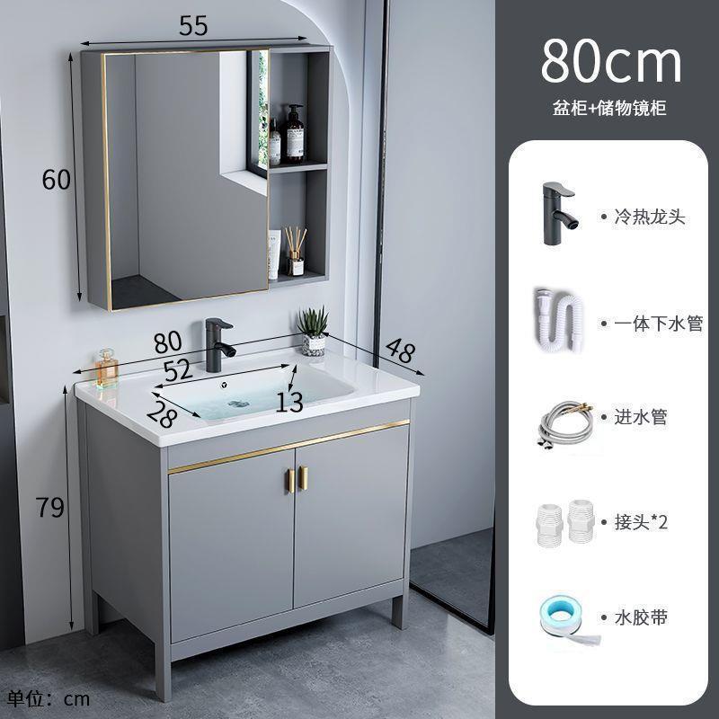 • 80 신사 그레이 플로어 스탠딩 + 타월 바 거울 캐비닛