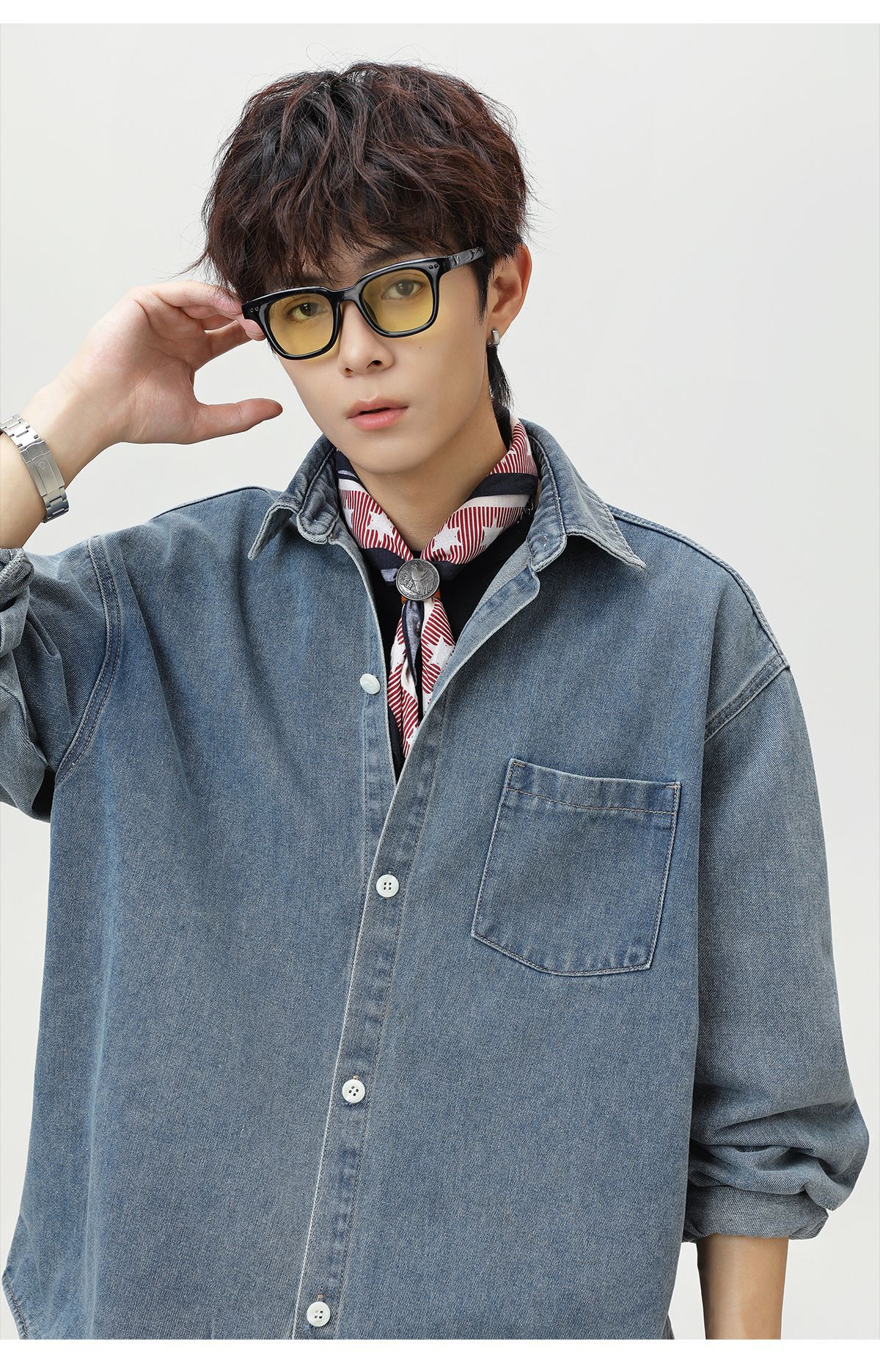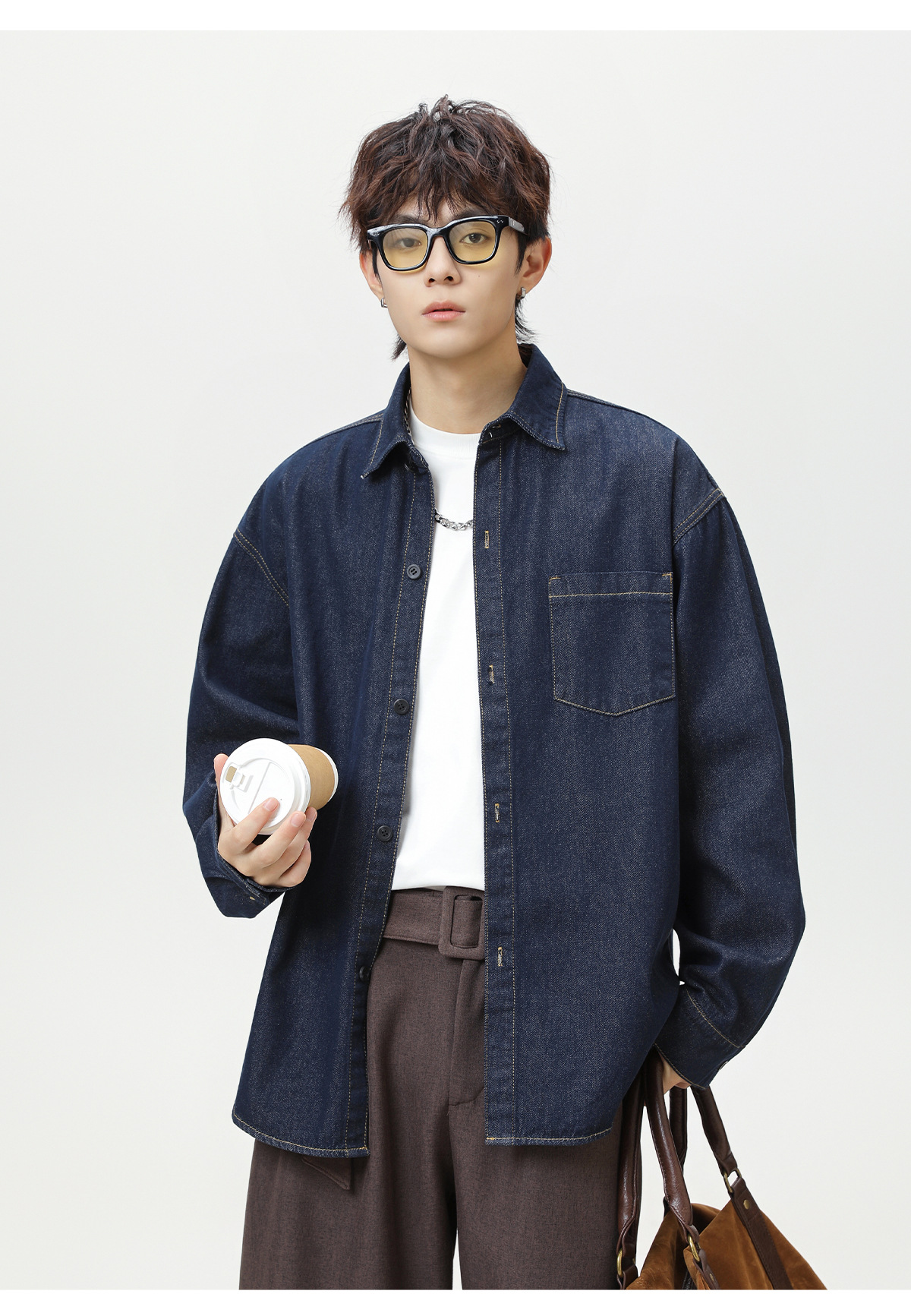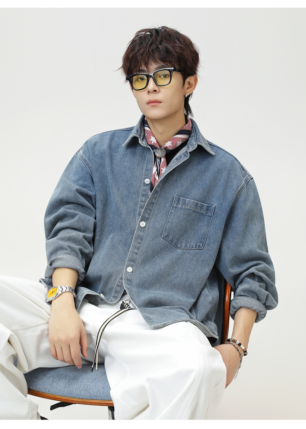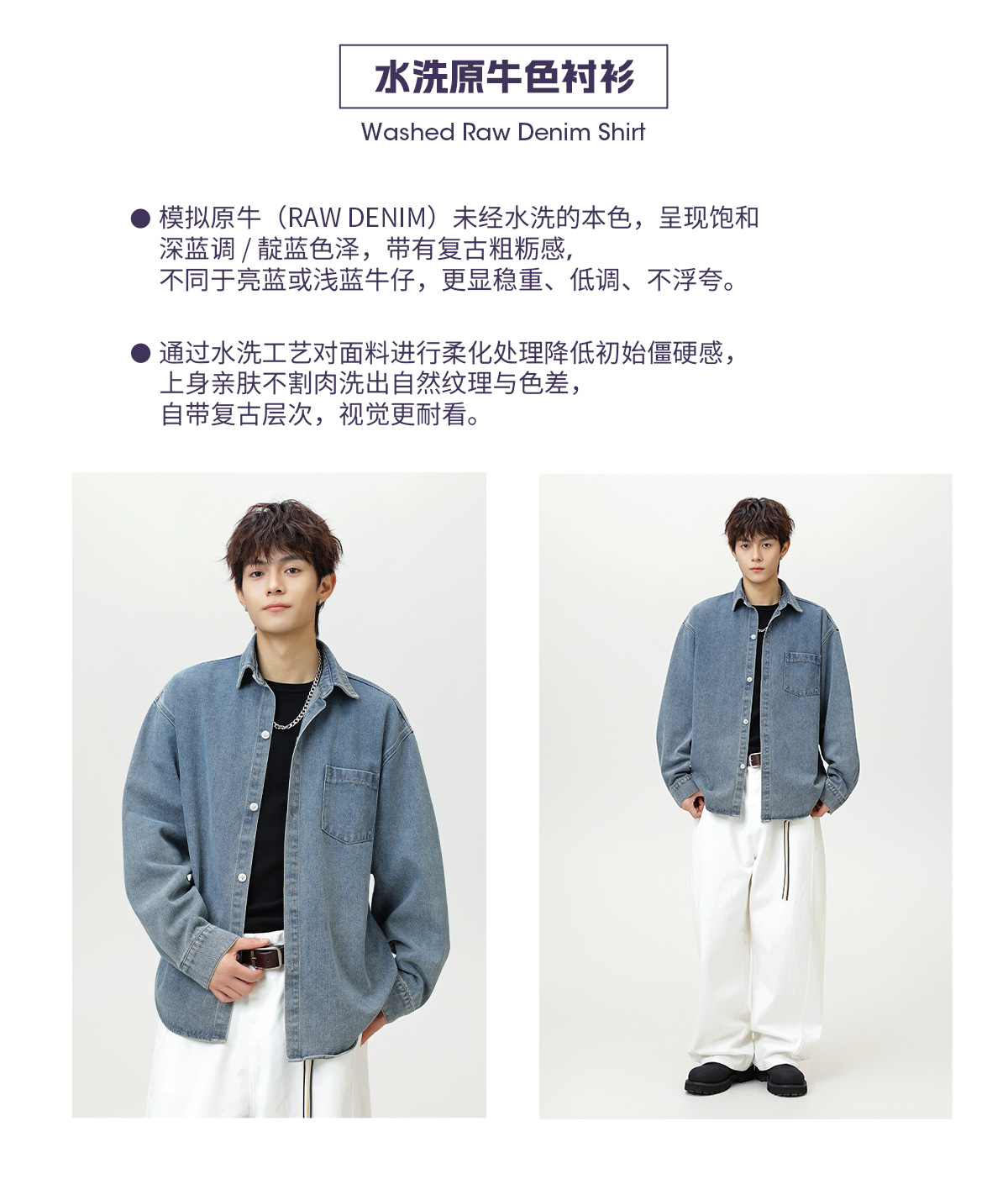 남성용 레트로 오리지널 소가죽 긴팔 셔츠 25 가을 신작 일본식 루즈 트렌디 브랜드 캐주얼 워싱 데님 셔츠 재킷스토어 가기