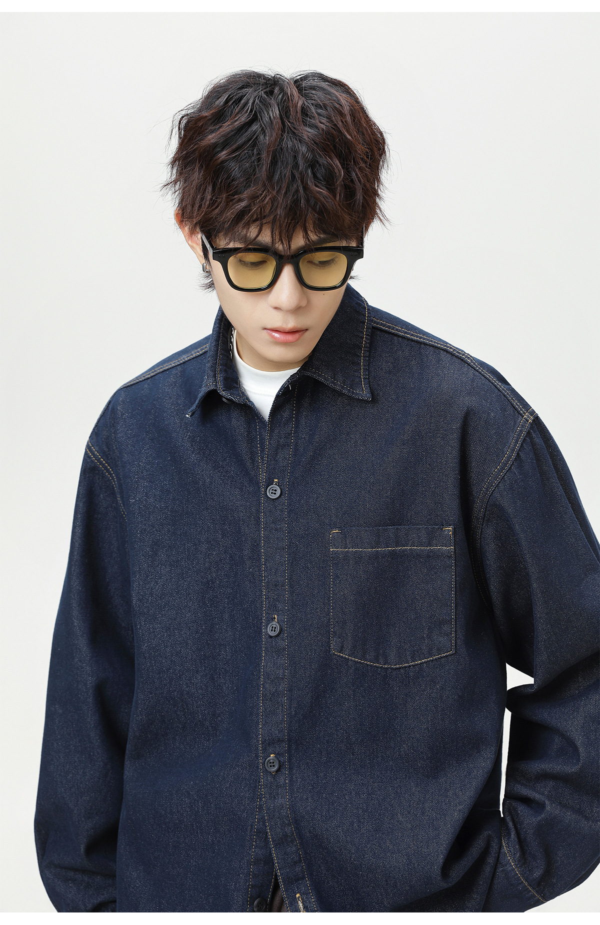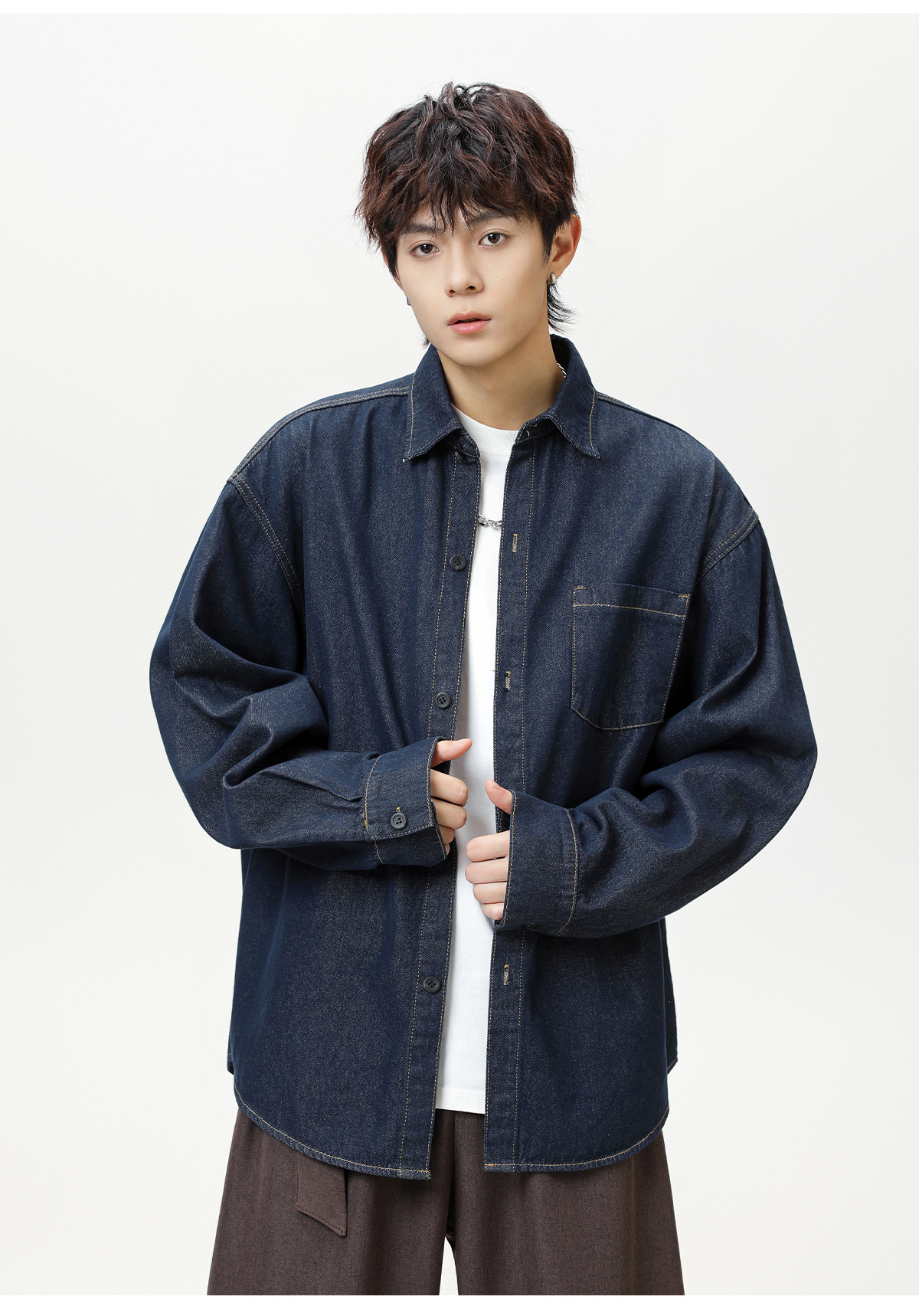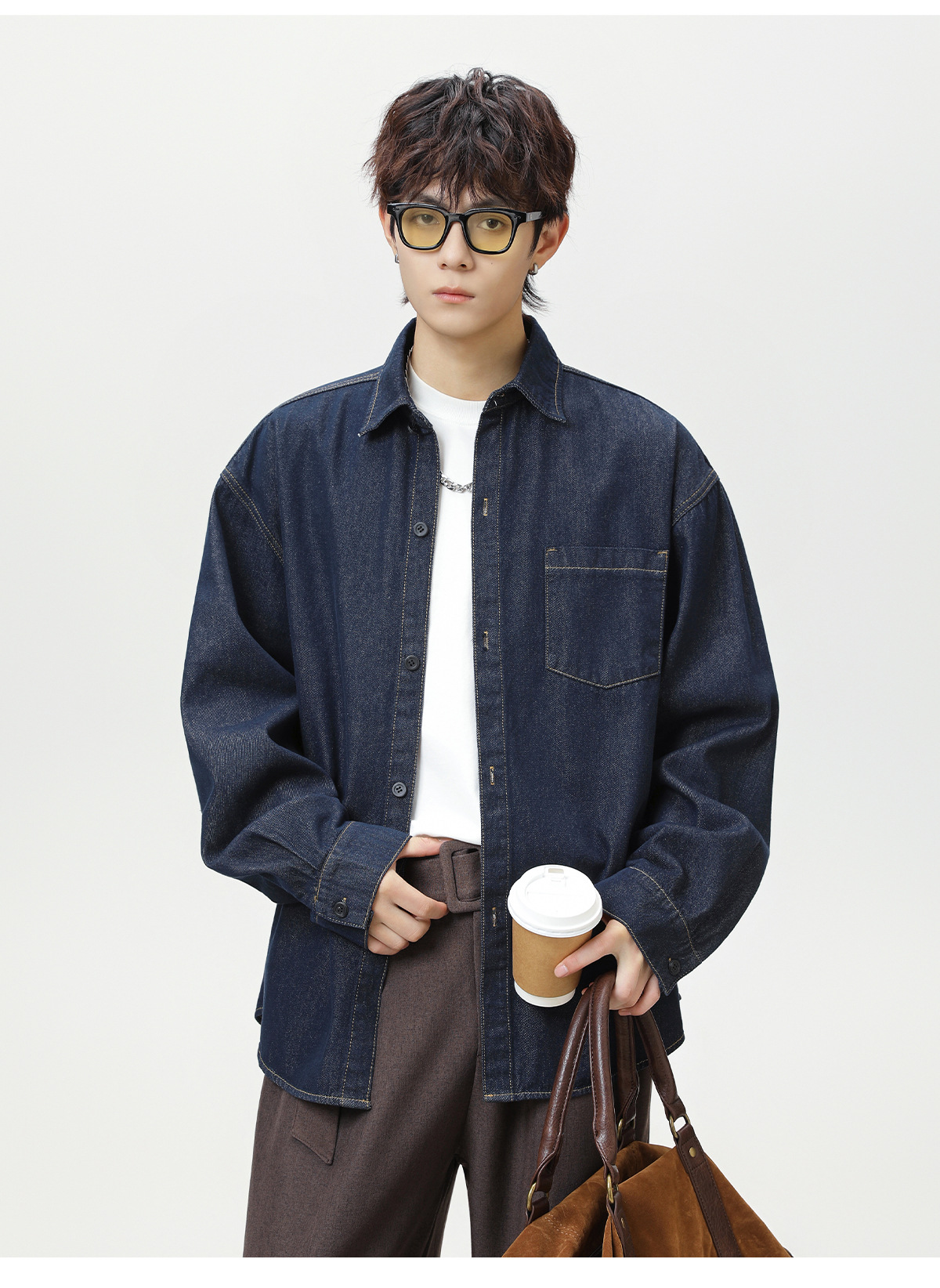 남성용 레트로 오리지널 소가죽 긴팔 셔츠 25 가을 신작 일본식 루즈 트렌디 브랜드 캐주얼 워싱 데님 셔츠 재킷스토어 가기