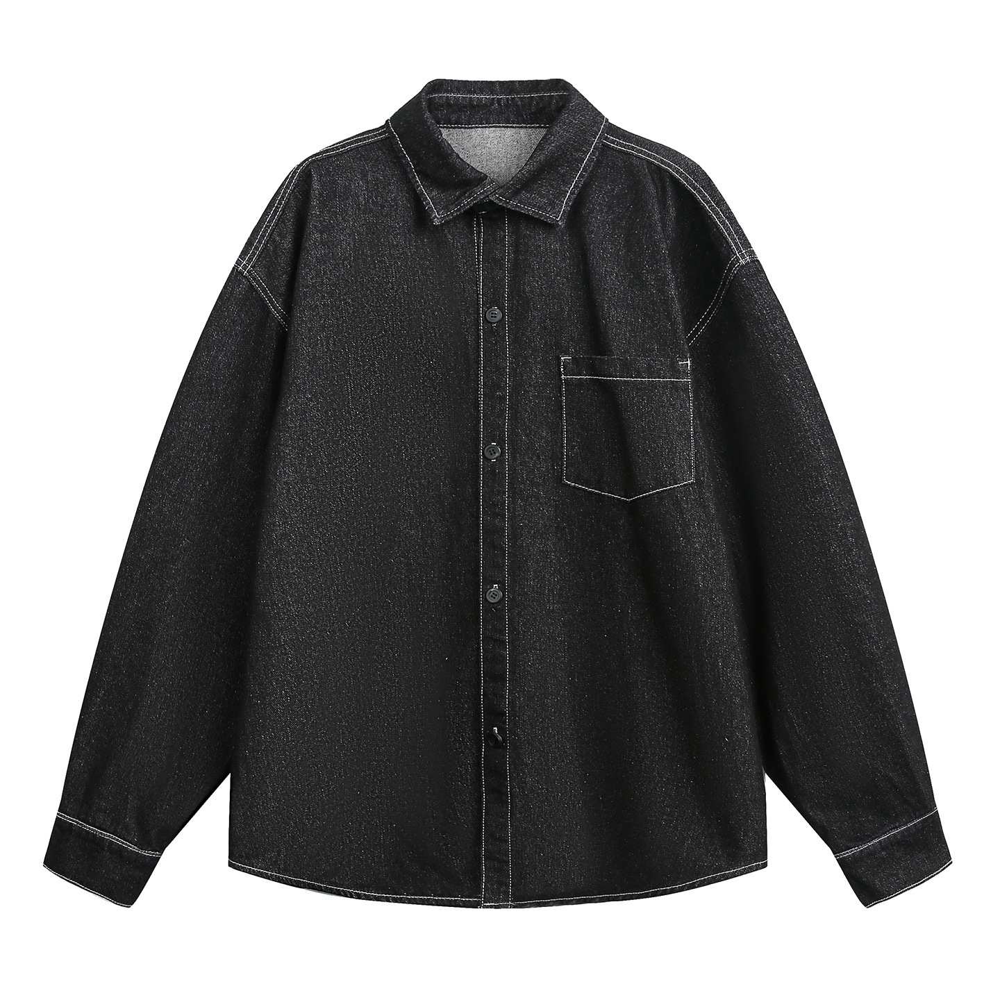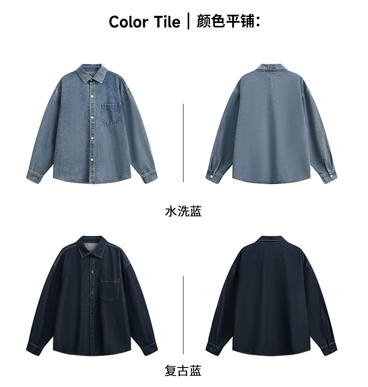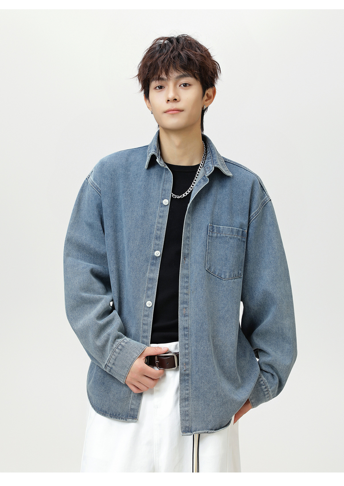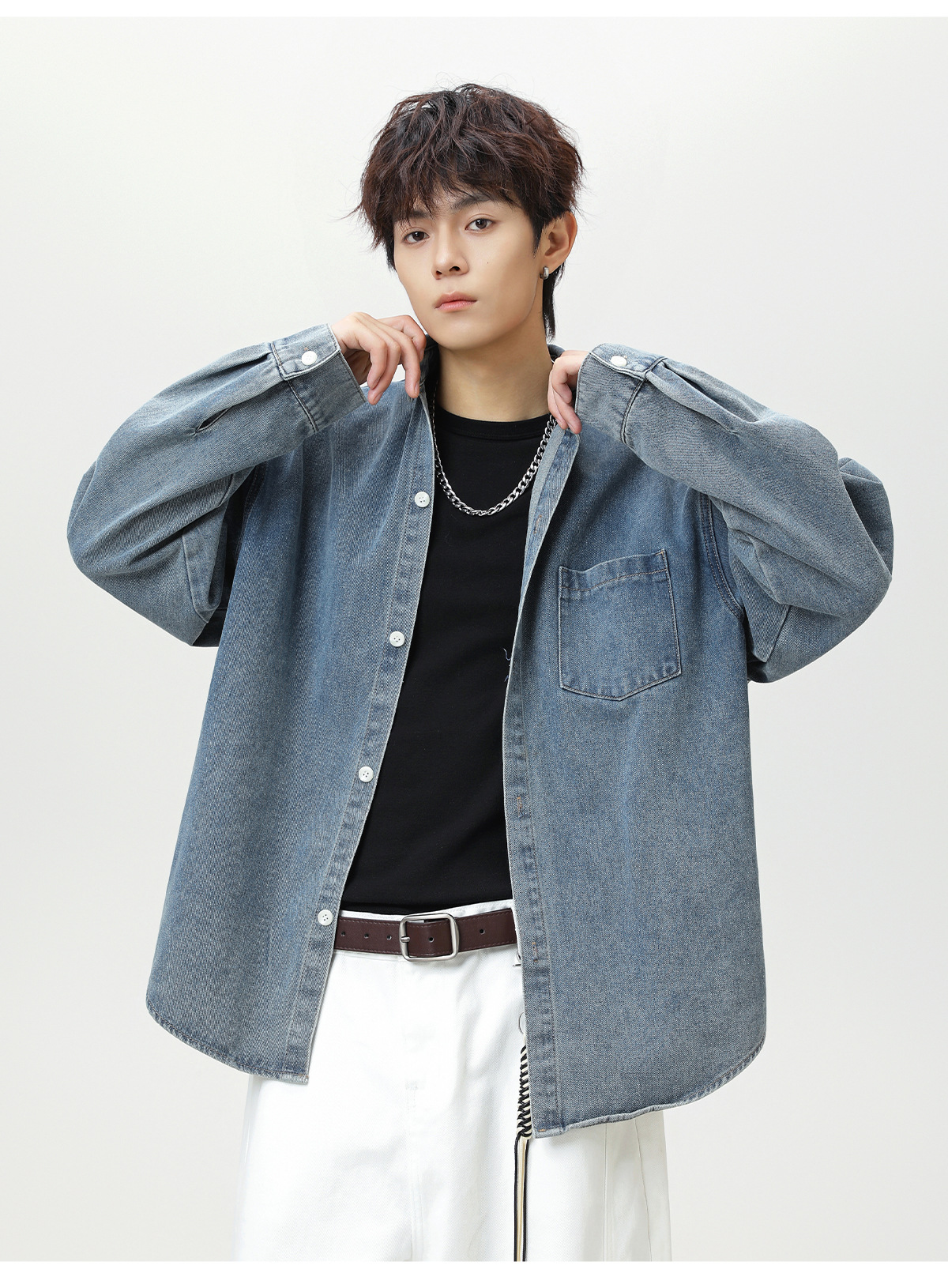 남성용 레트로 오리지널 소가죽 긴팔 셔츠 25 가을 신작 일본식 루즈 트렌디 브랜드 캐주얼 워싱 데님 셔츠 재킷스토어 가기