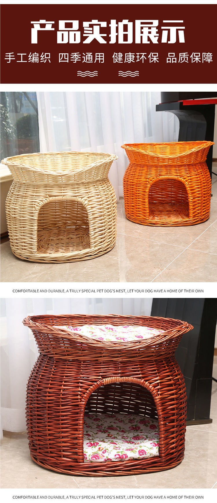 매트 하우스 고양이 개집 짠 탈부착 및 세탁 가능한 등나무 중소형 더블 레이어 매트 여름 고양이 개집 사계절 모두 사용 가능 밀폐형