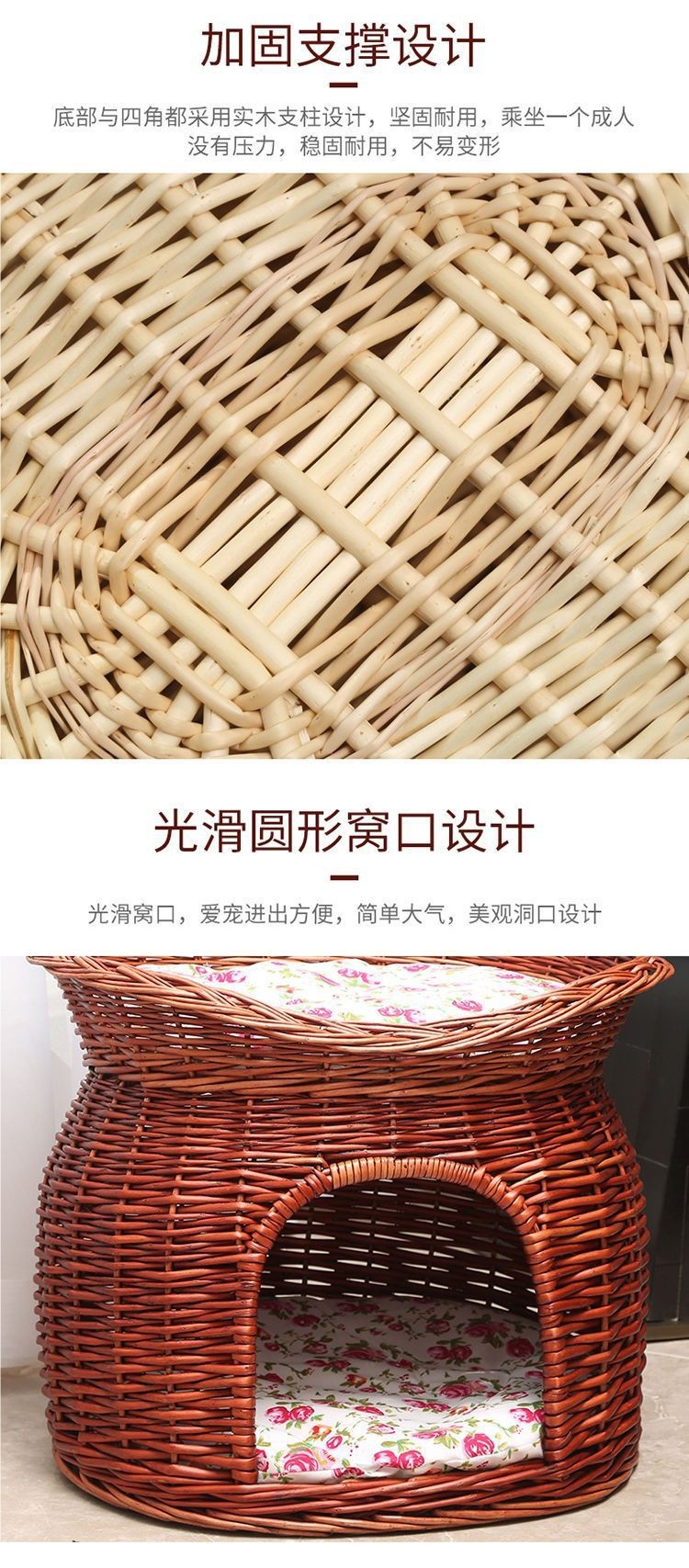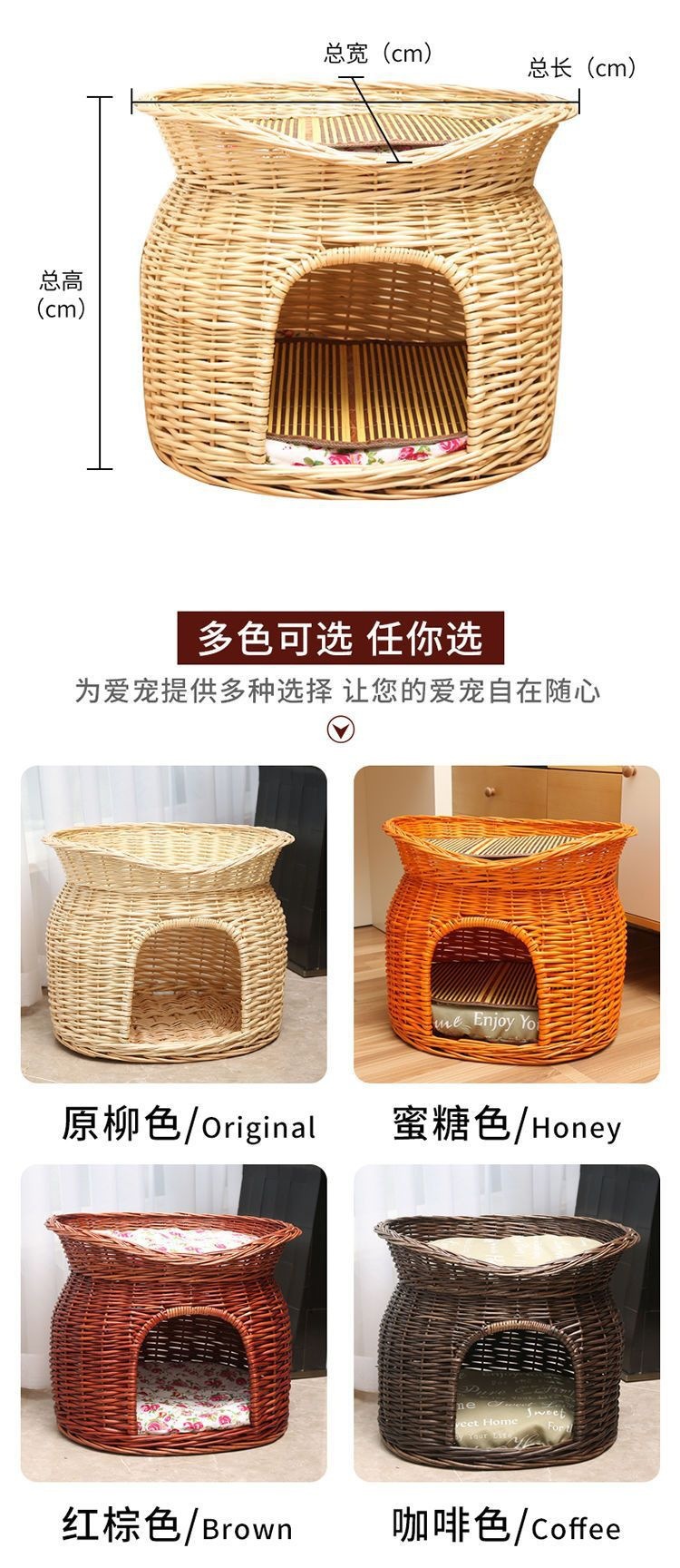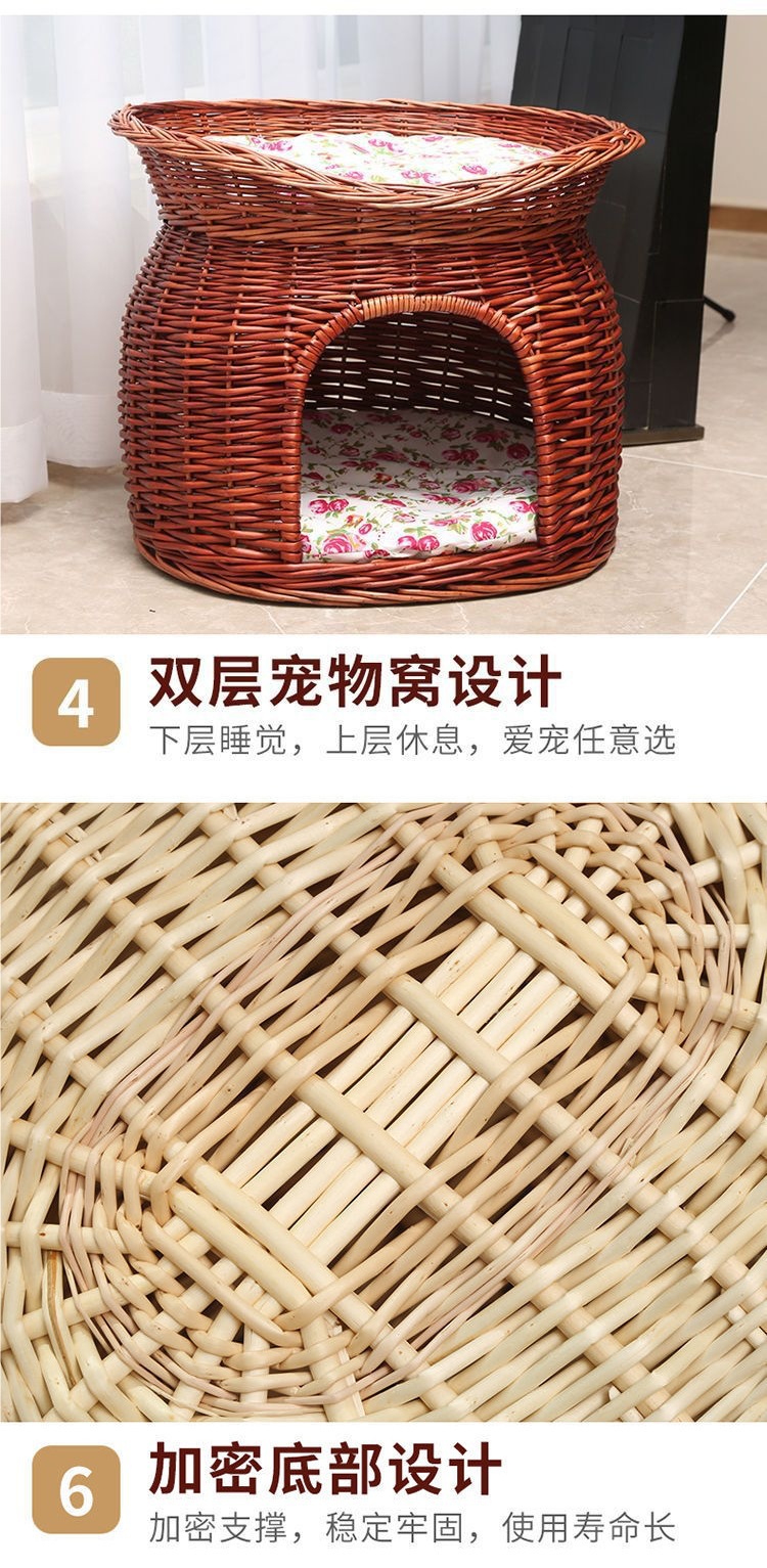 매트 하우스 고양이 개집 짠 탈부착 및 세탁 가능한 등나무 중소형 더블 레이어 매트 여름 고양이 개집 사계절 모두 사용 가능 밀폐형스토어 가기