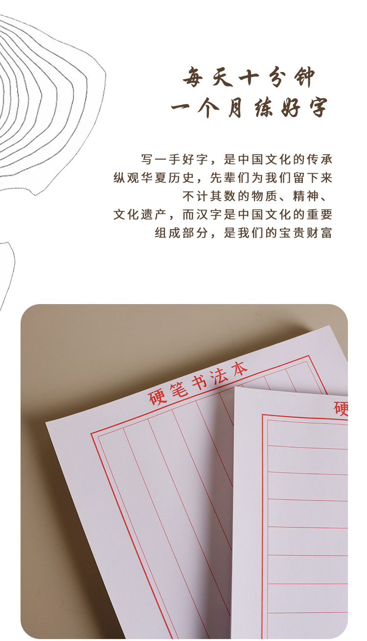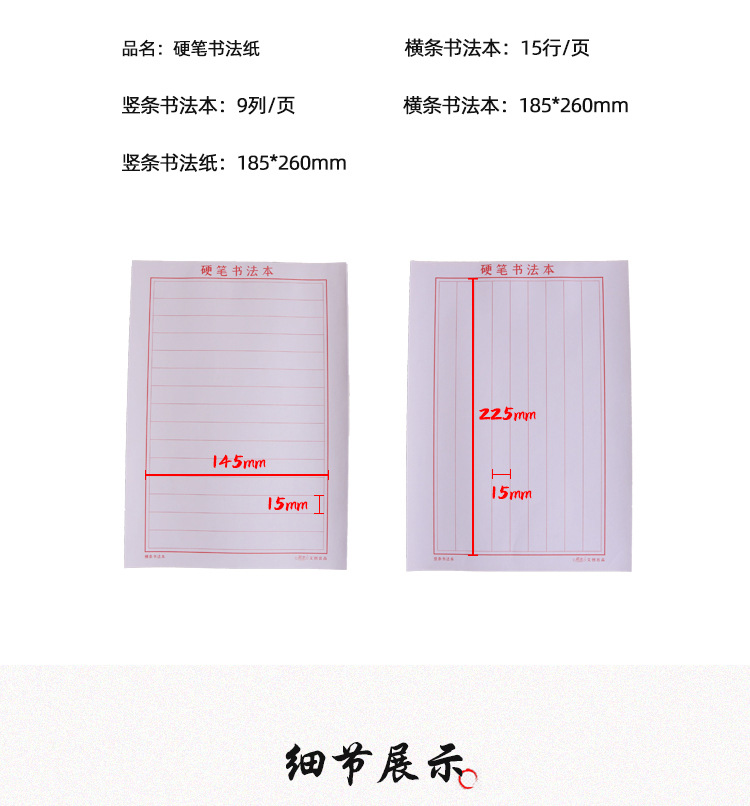 초등학생과 성인을 위한 세로줄과 가로줄 서예 연습장, 세로줄과 가로줄 서예 연습장, 두꺼운 종이