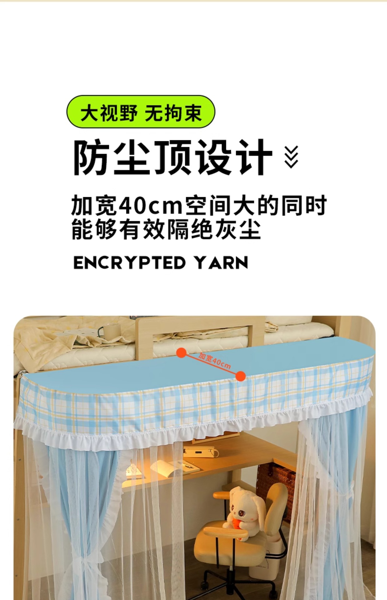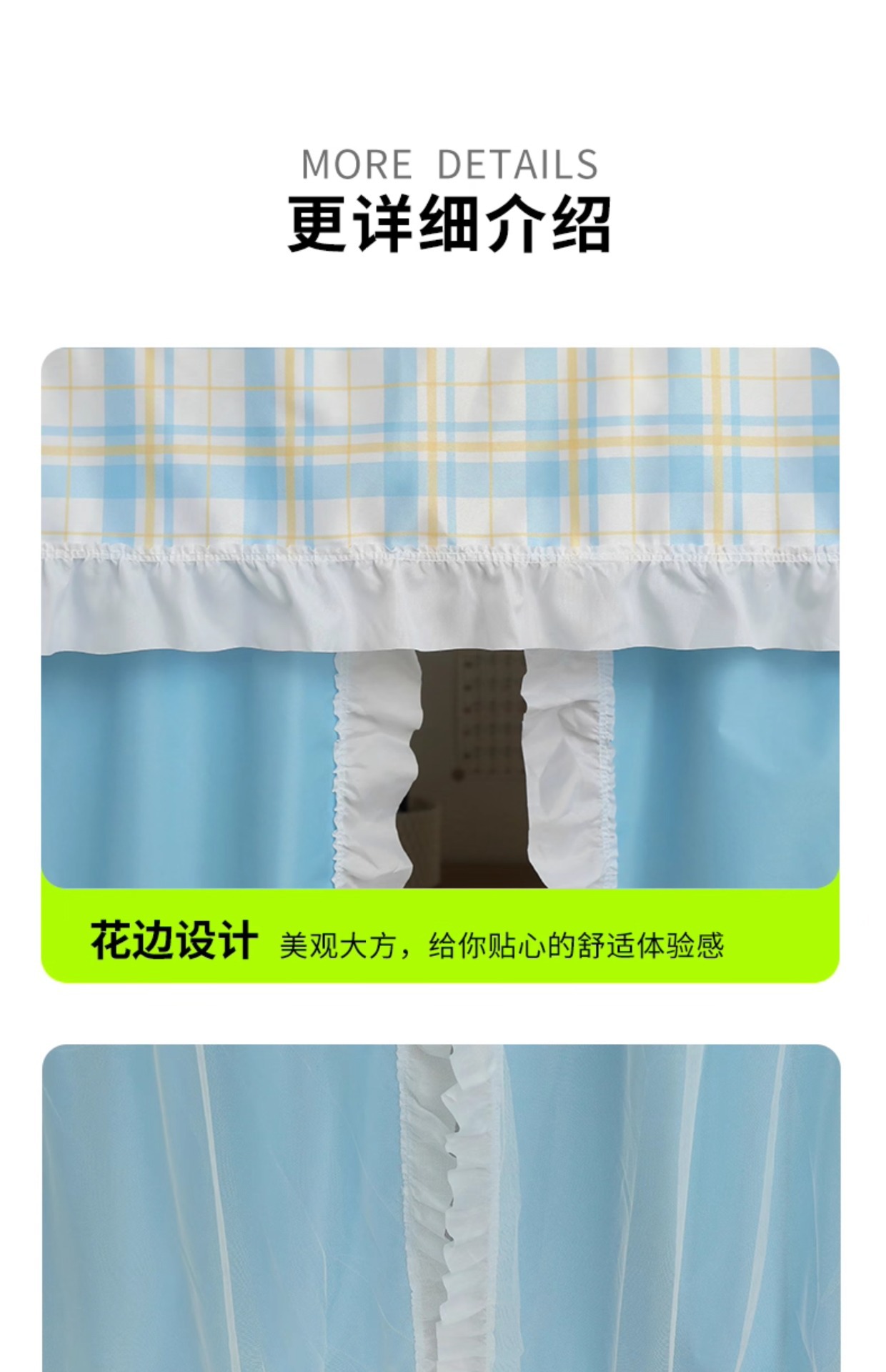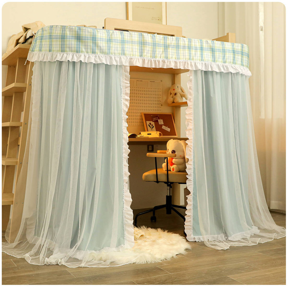 • 체크무늬 레이스-라이트 그린 [테이블 커튼봉 + 통기성 암막 커튼 + A급 모기장 + 방진 상판]