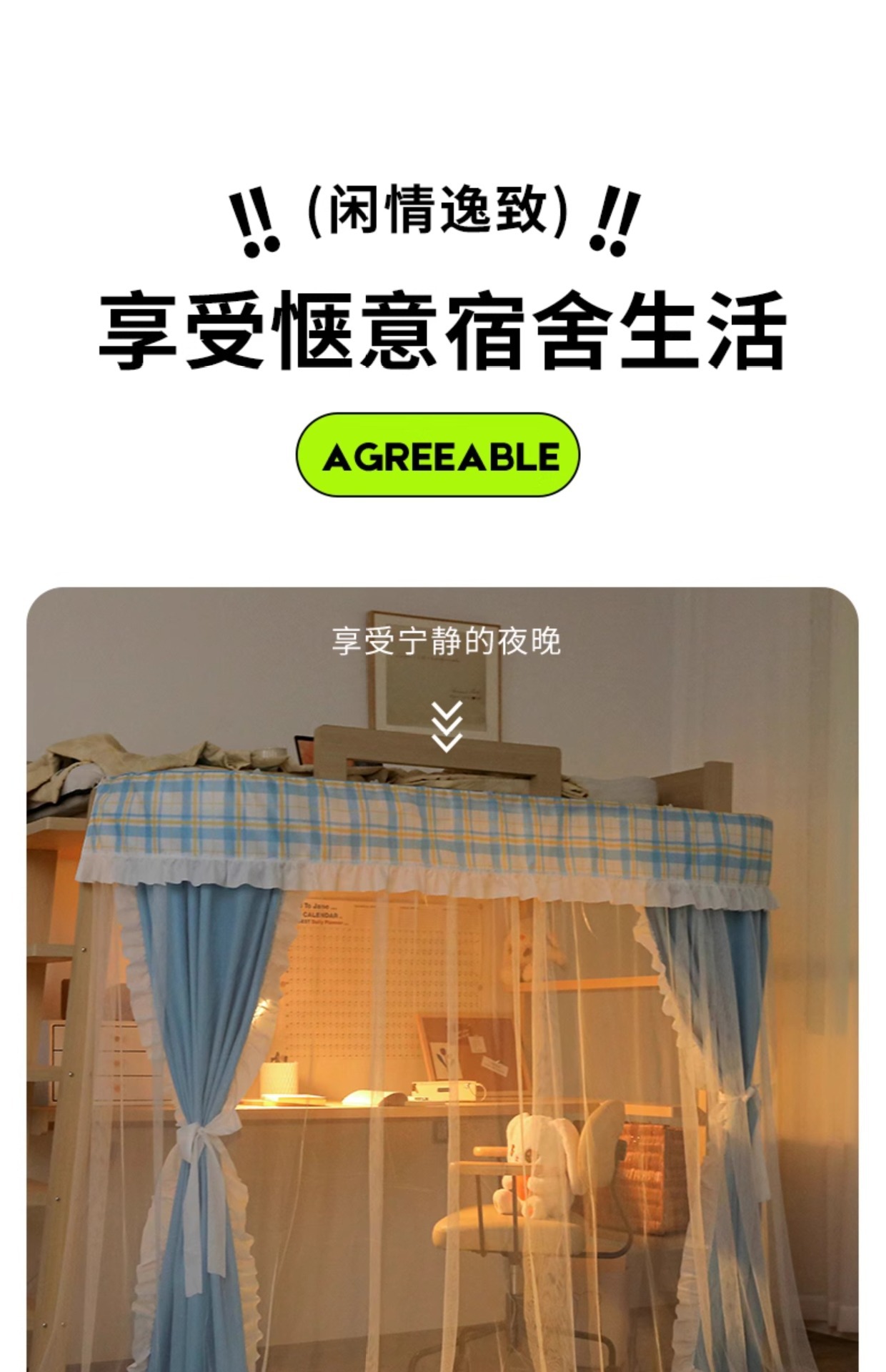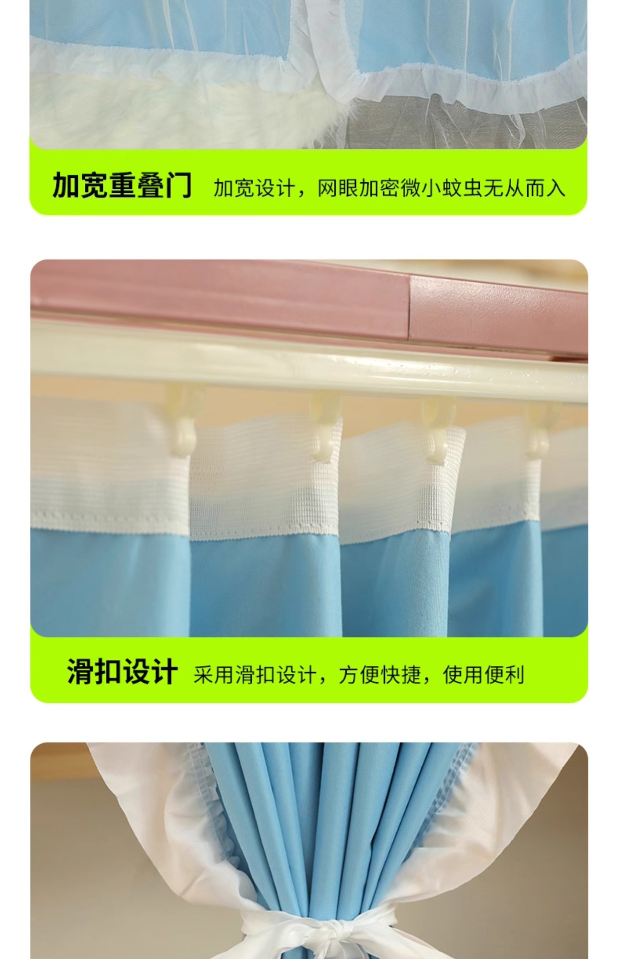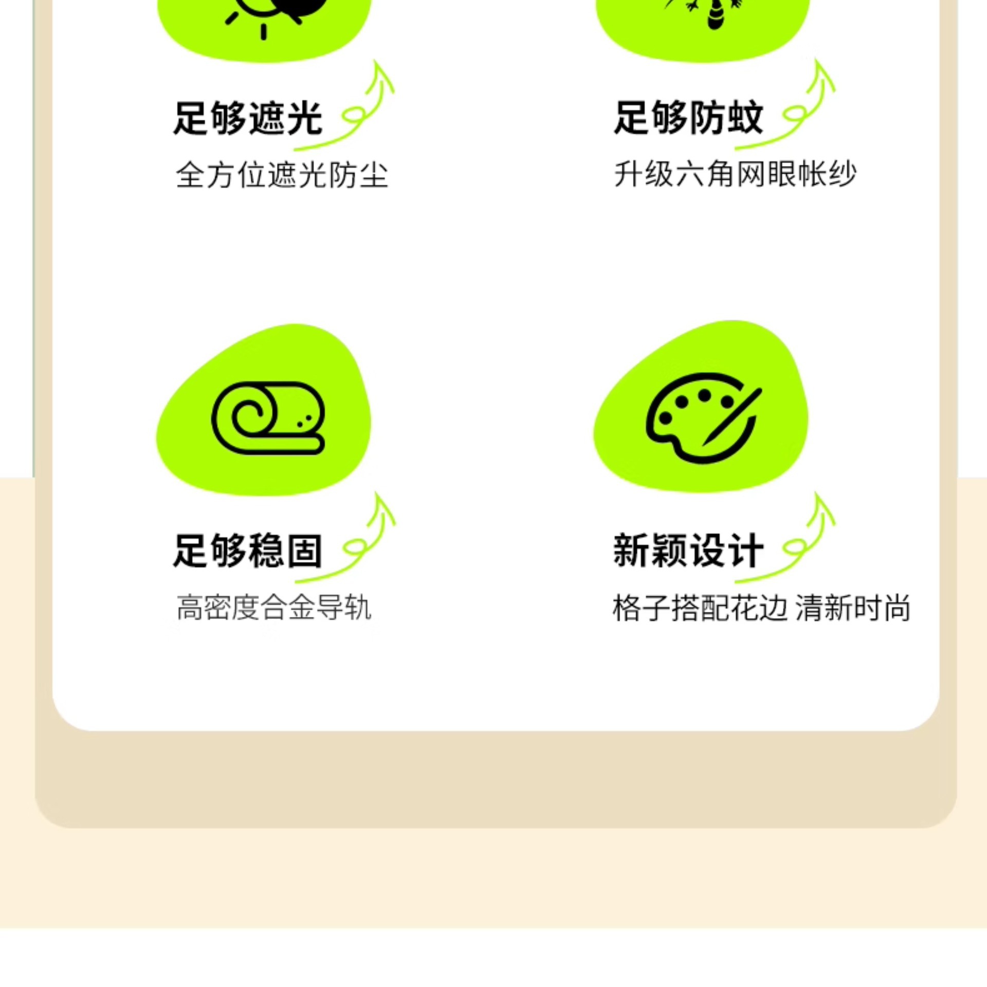 • 체크무늬 레이스-라이트 그린 [테이블 커튼봉 + 통기성 암막 커튼 + A급 모기장 + 방진 상판]