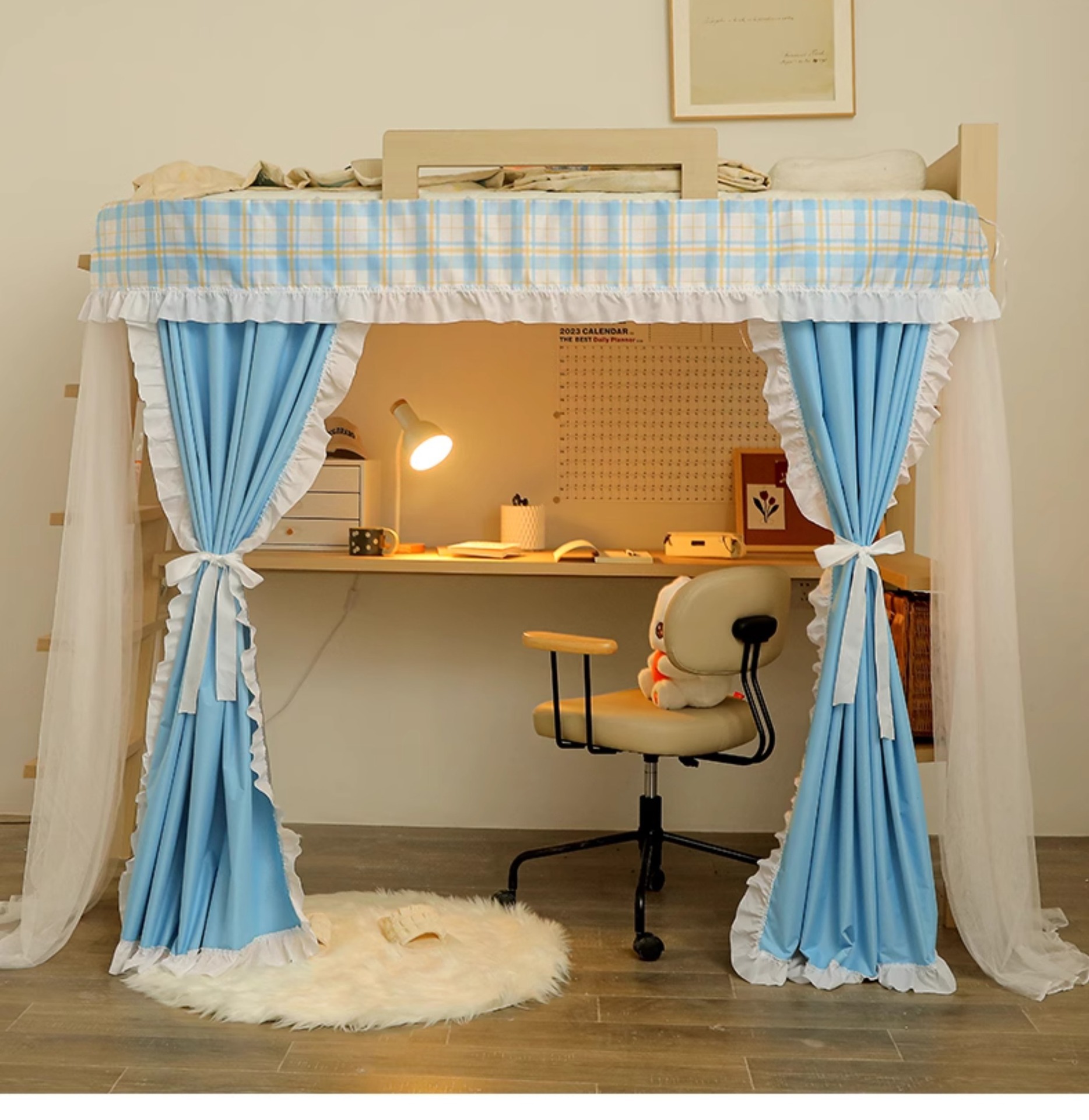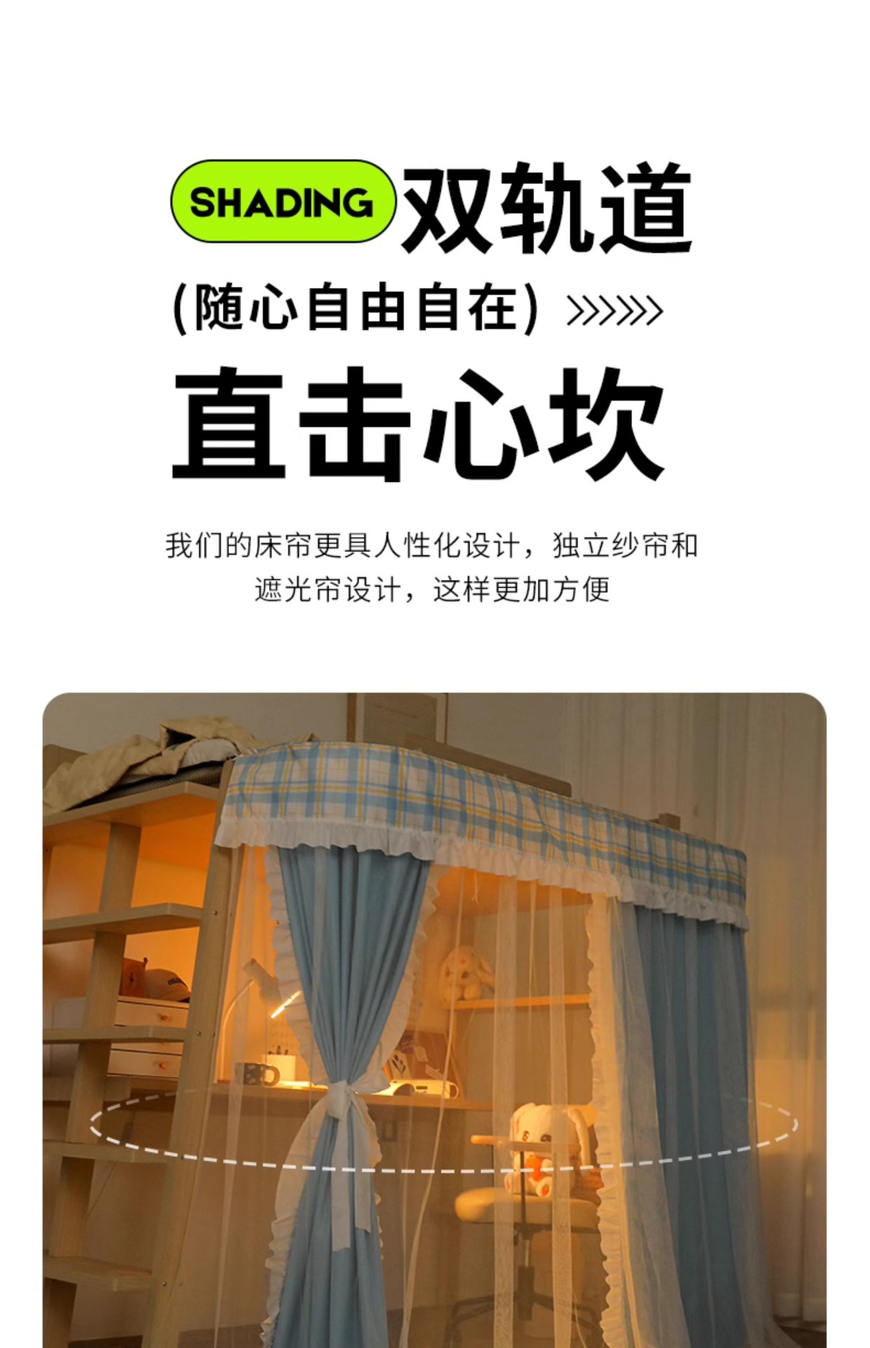 학생 기숙사 U자형 트랙 확장 테이블 커튼, 빛 차단 침대 커튼, 기숙사 침대 커튼, 이층 침대, 테이블 커튼스토어 가기