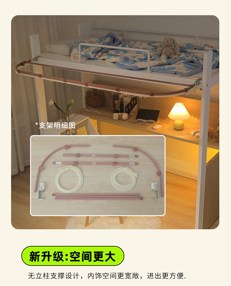학생 기숙사 U자형 트랙 확장 테이블 커튼, 빛 차단 침대 커튼, 기숙사 침대 커튼, 이층 침대, 테이블 커튼
