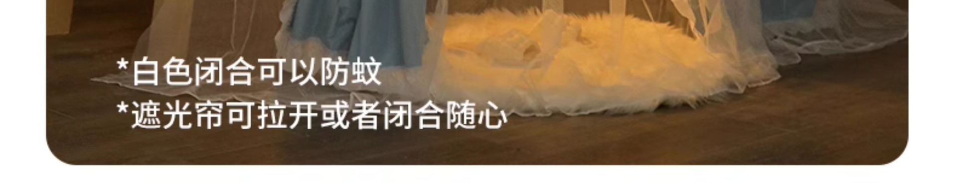 • 체크무늬 레이스블루 [테이블커튼봉+통기성암막커튼+A급 모기장+방진탑]