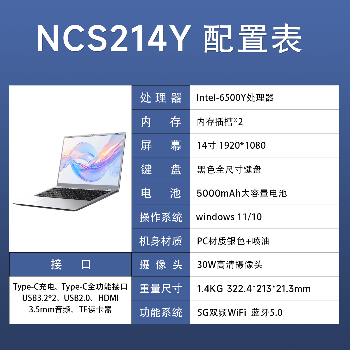 2025년 신형 4코어 6500Y 학생용 휴대용 컴퓨터 비즈니스 오피스 노트북 얇고 가벼운 노트북
