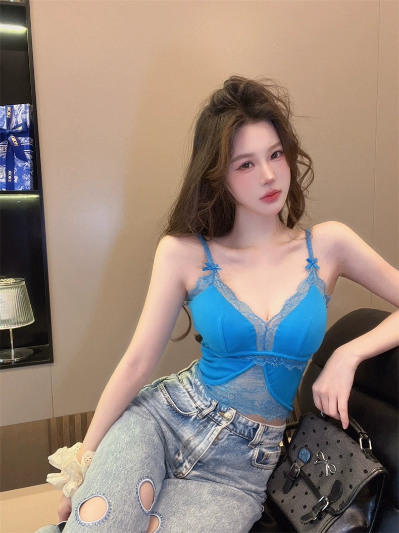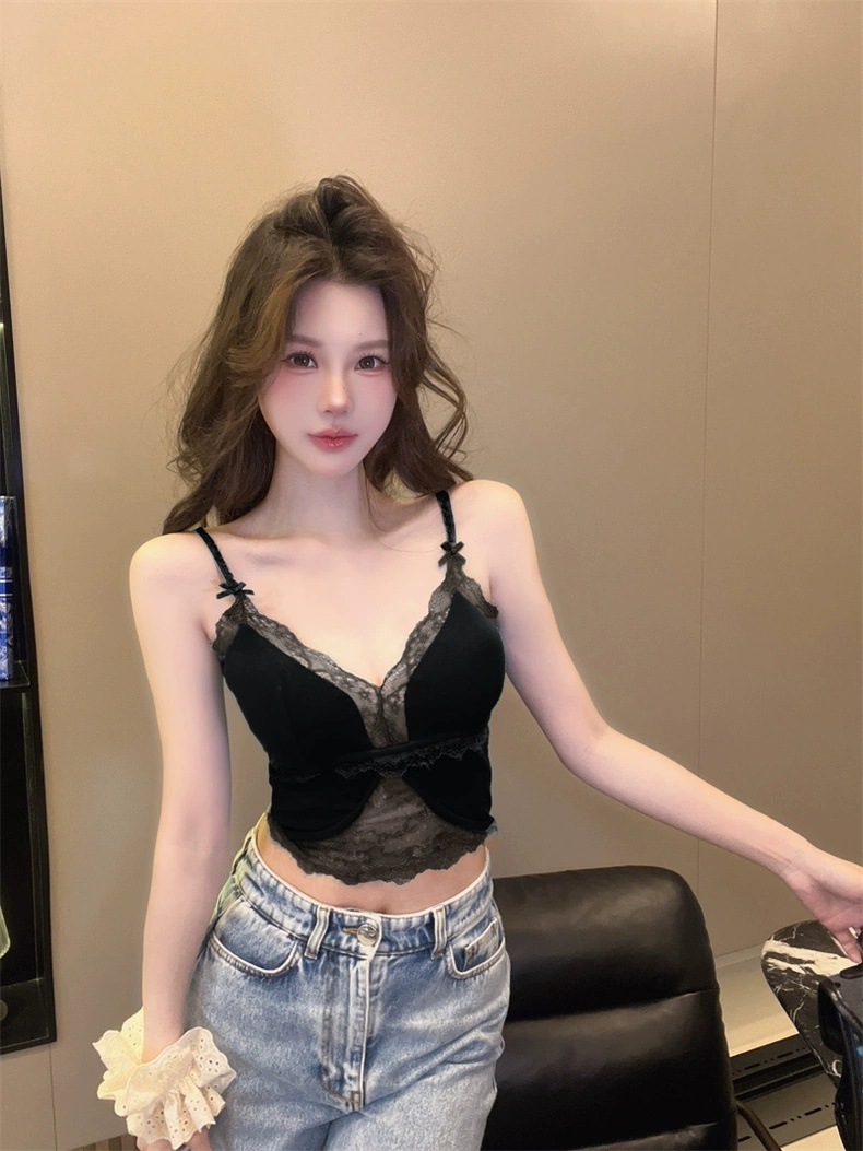 L3318을 한국어로 번역해 주세요. # Pure Desire 브이넥 레이스 스플라이스 캐미솔 핫걸 섹시 아름다운 등 슬림핏 이너웨어 아우터웨어 베이스스토어 가기