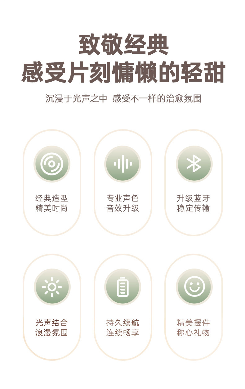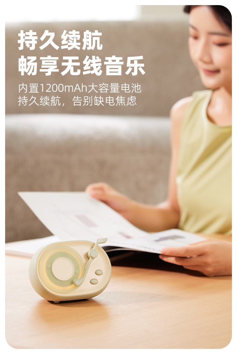 소녀와 가장 친한 친구를 위한 실내 조명이 포함된 새로운 무선 블루투스 스피커 실용적인 USB 충전식 복고풍 비닐 레코드 플레이어