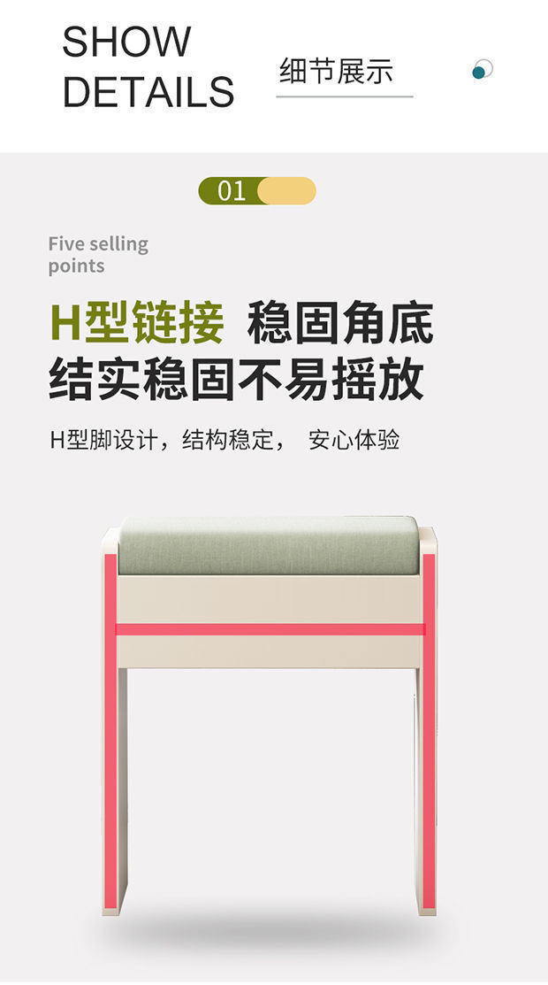 내구성이 뛰어난 작은 벤치, 침실 인터넷 연예인 화장대, 화장대, 신발 교환용 작은 벤치, 가정용 견고한 국경 간 직접 판매스토어 가기