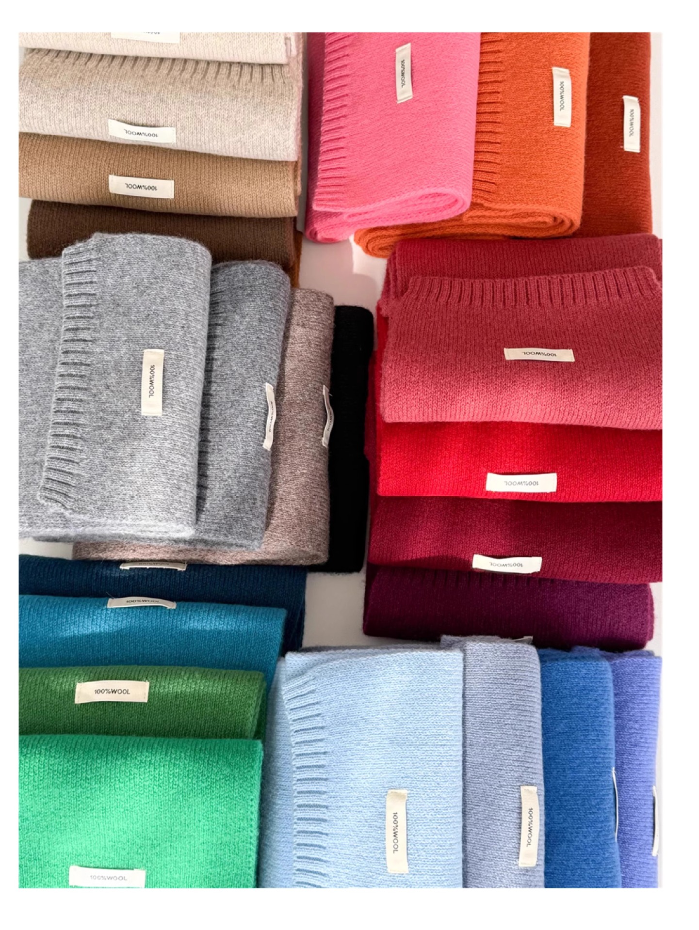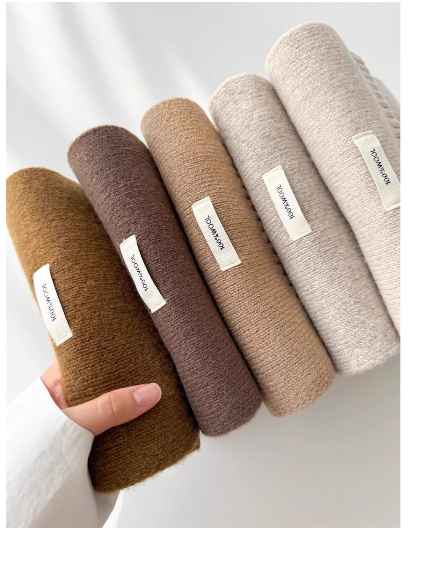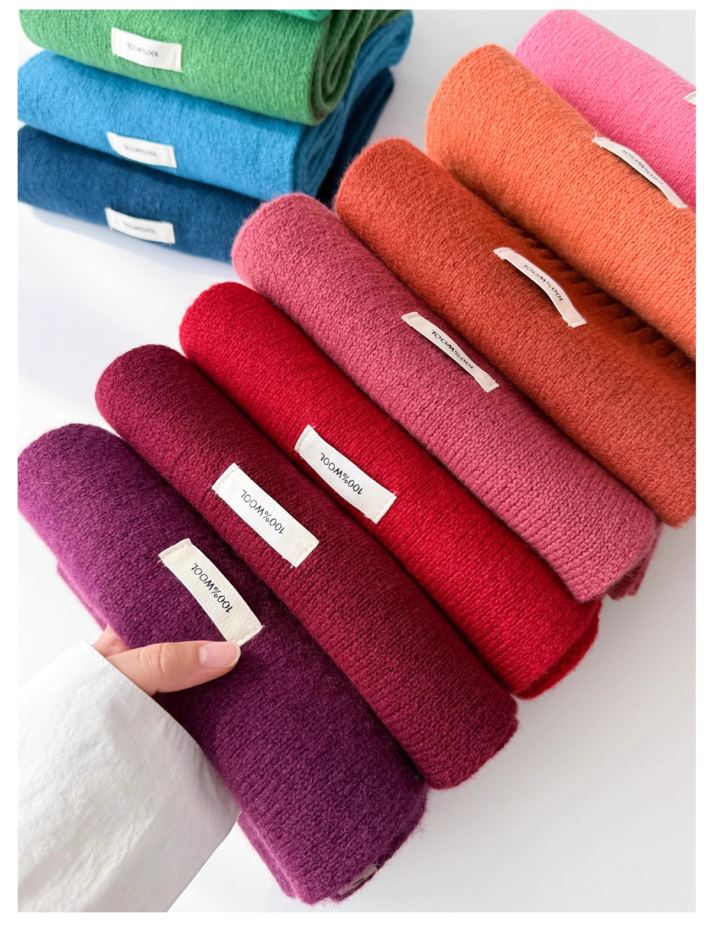 한국 스타일 새로운 다목적 솔리드 컬러 100% 순수 울 스카프 여성 가을, 겨울 따뜻한 니트 스카프 패션 다목적 스카프