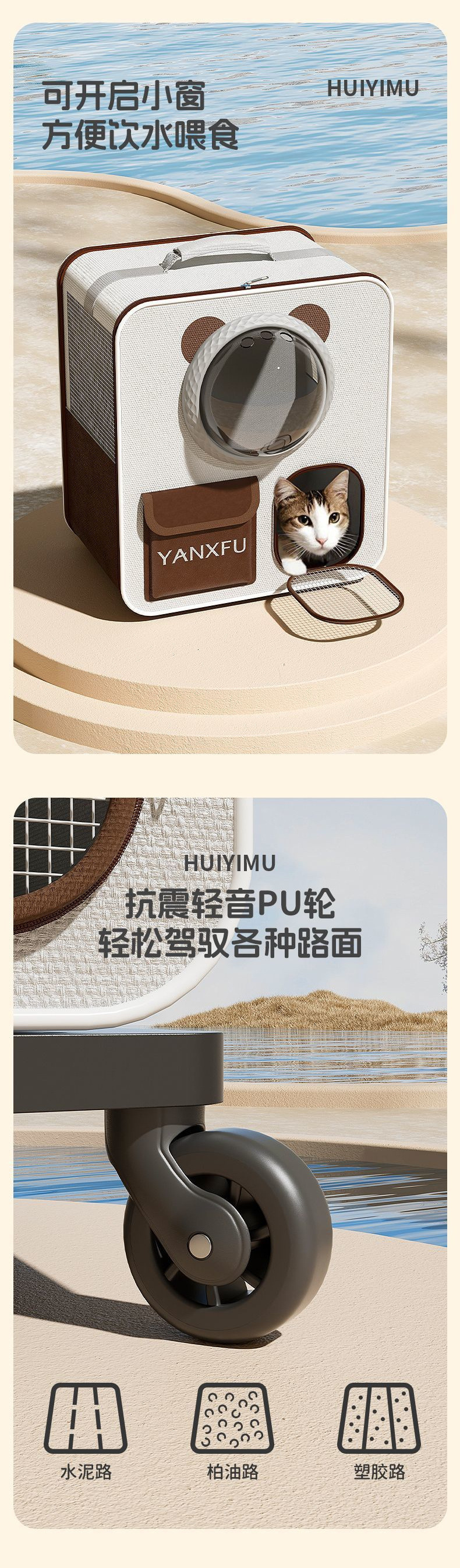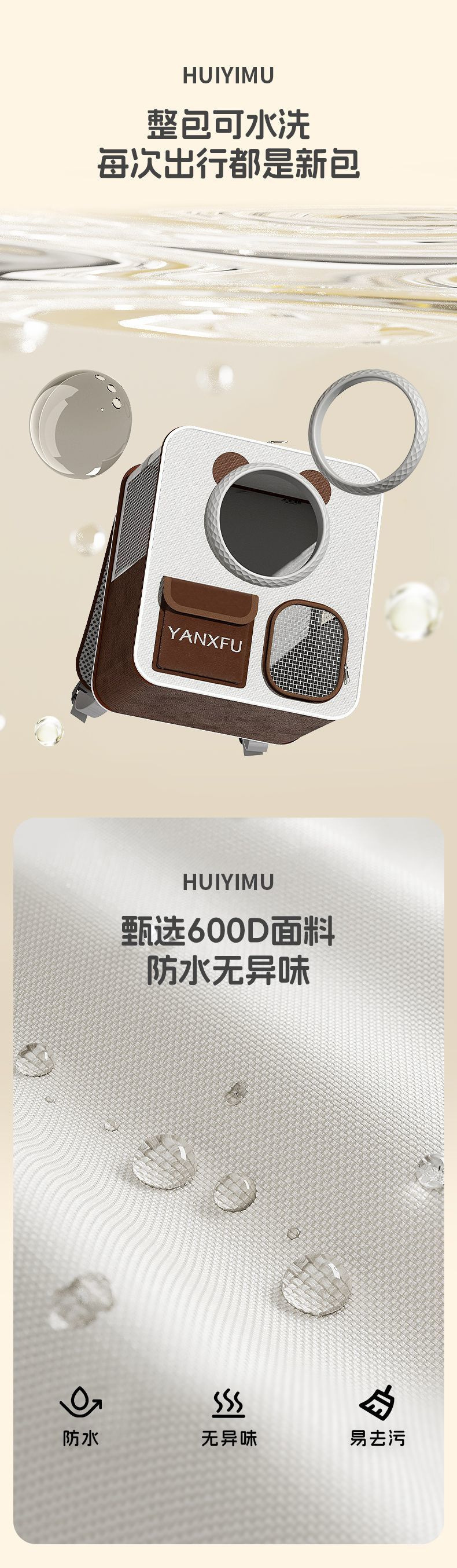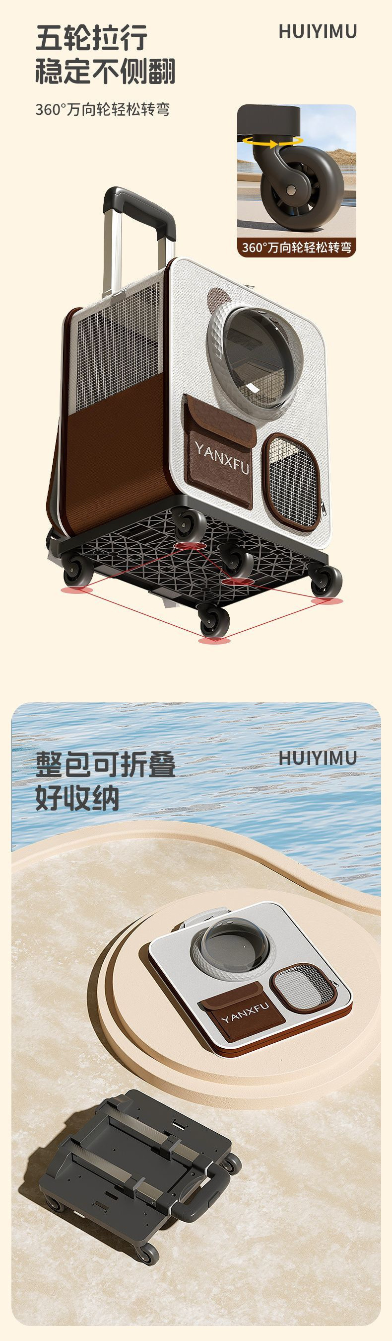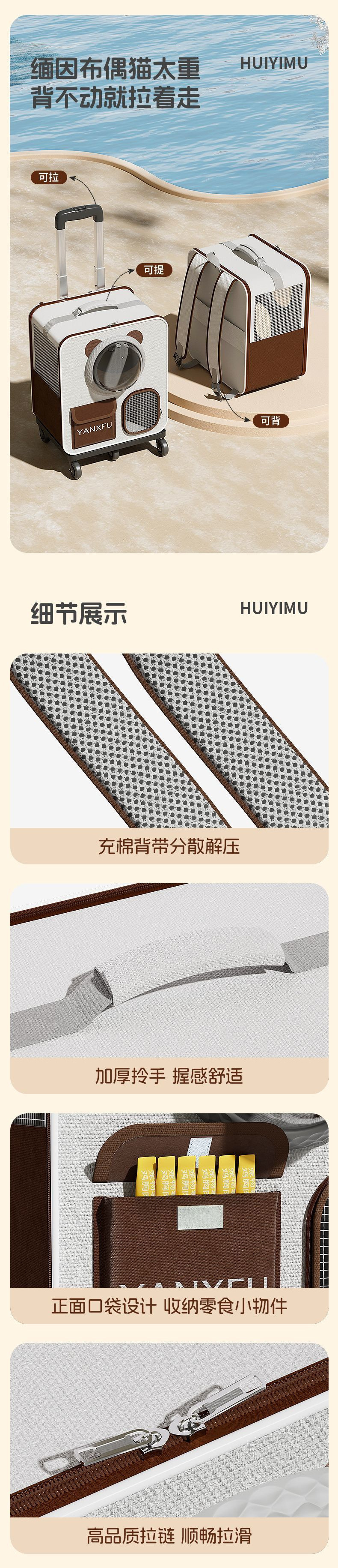 • 크림색 우주 캡슐 트롤리 백팩 [충격을 흡수하는 가벼운 소리의 PU 휠]