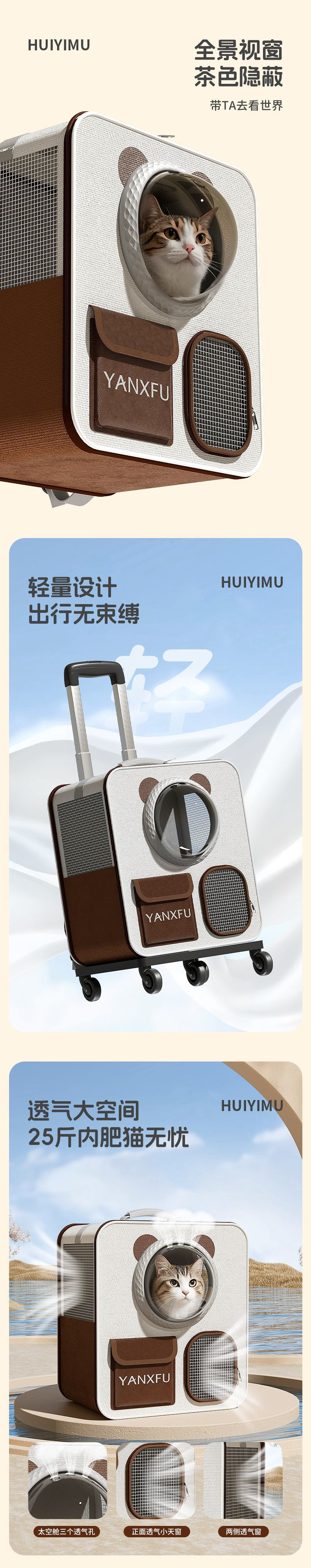 고양이 가방 우주 캡슐 휴대용 애완 동물 트롤리 케이스 여러 고양이 대용량 가방 고양이와 개 배낭 어깨
