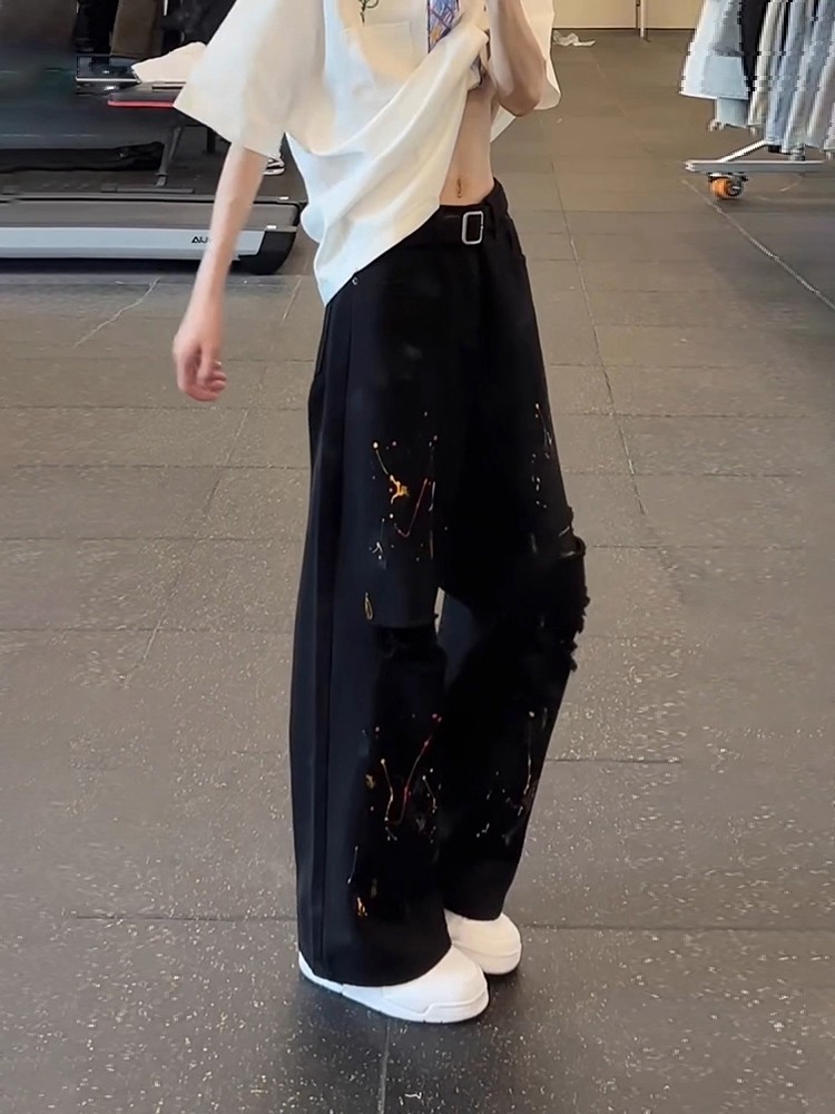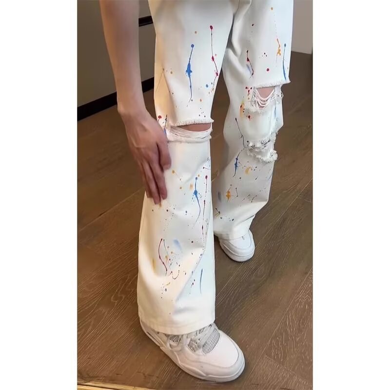 남성용 그래피티 찢어진 청바지, 여름 아메리칸 스타일, 핸섬한 고급 팬츠, 스트레이트 레그, 루즈하고 레그 피팅이 없는 부츠컷 팬츠스토어 가기