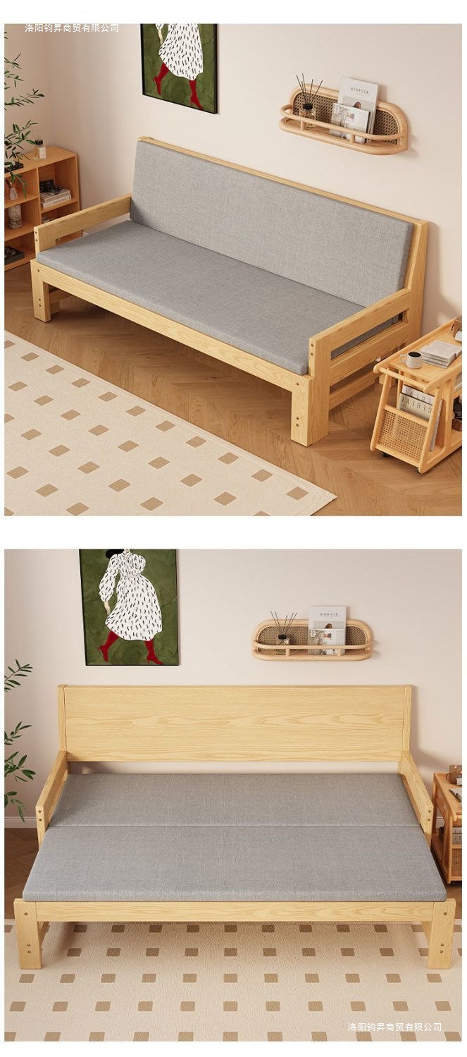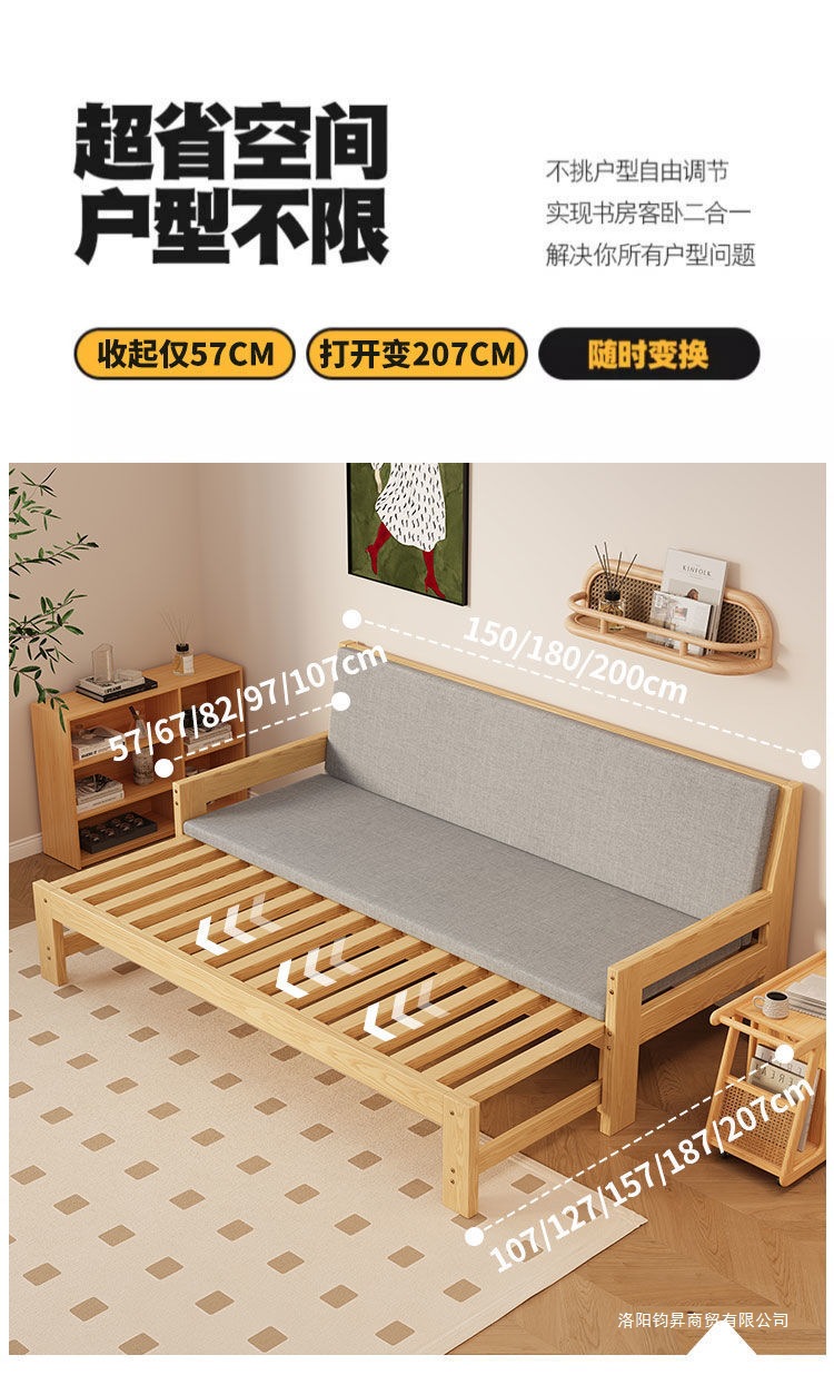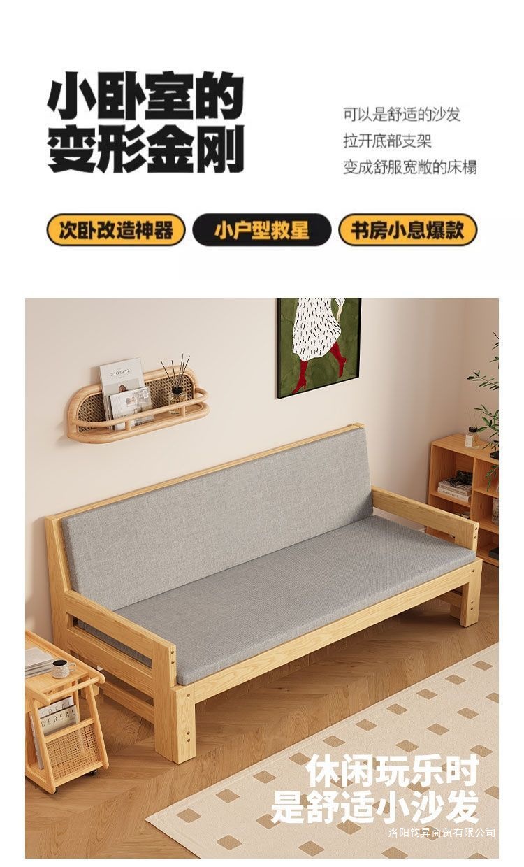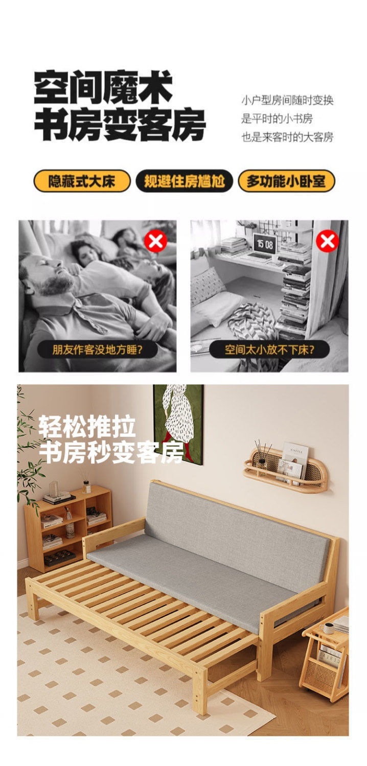 원목 소파 베드, 다기능 접이식 침대, 거실 풀아웃 침대, 소형 아파트, 더블 심플 올인원 겸용 접이식 프레임스토어 가기