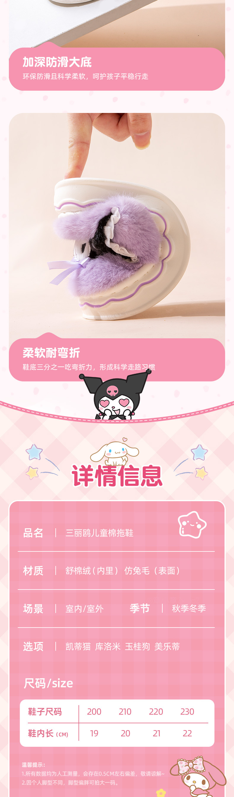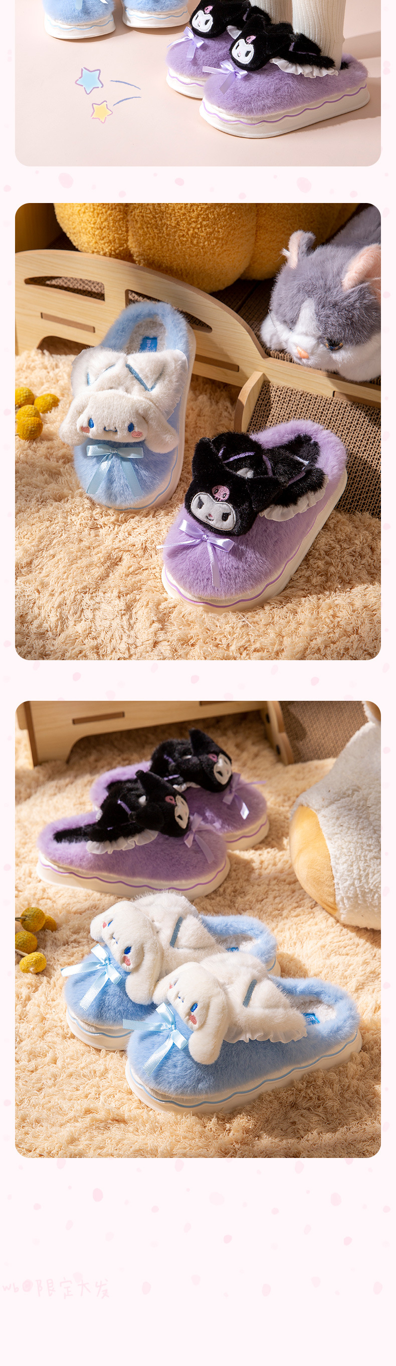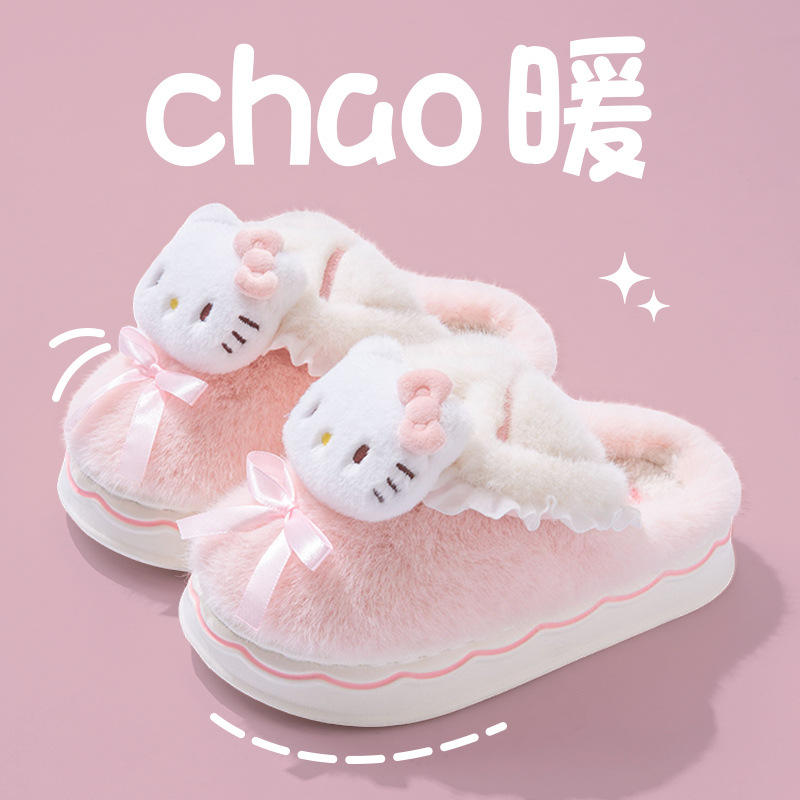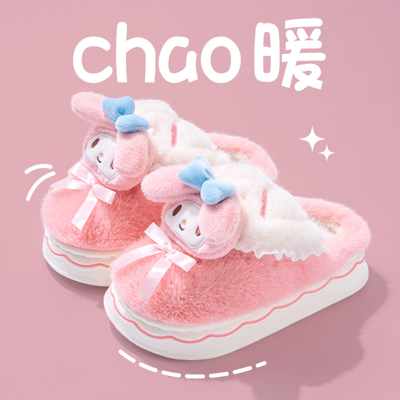 Kuromi 어린이 면화 슬리퍼 소녀 2024 새로운 겨울 부모-자식 플러시 따뜻한 실내 소녀 아기 슬리퍼스토어 가기