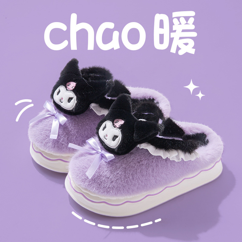 Kuromi 어린이 면화 슬리퍼 소녀 2024 새로운 겨울 부모-자식 플러시 따뜻한 실내 소녀 아기 슬리퍼